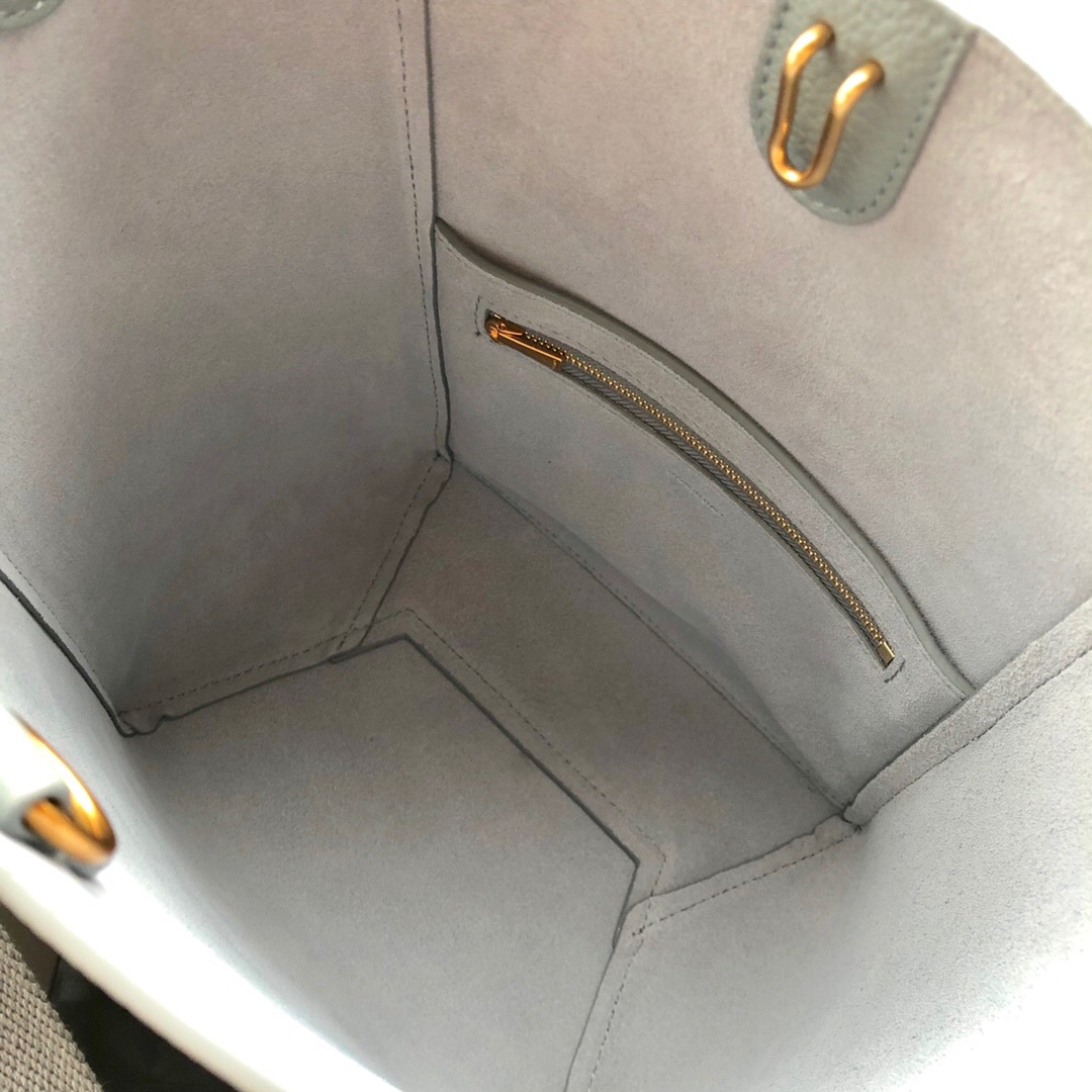 塞琳 BUCKET小号柔软粒面小牛皮水桶包 100%小牛皮 金色金属件 肩背 内部钩扣锁闭 内侧扁平和拉链口袋 可拆卸羊毛肩带长17英寸(42厘米) 颜色: 云雾蓝 7 X 10 X 5英寸(18 X 25 X 12厘米)