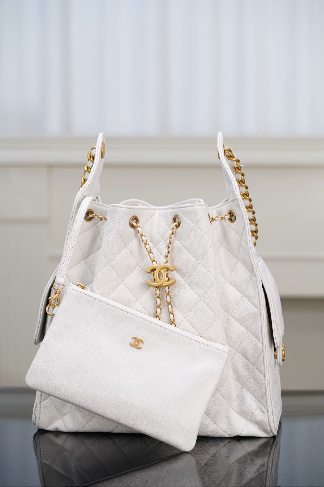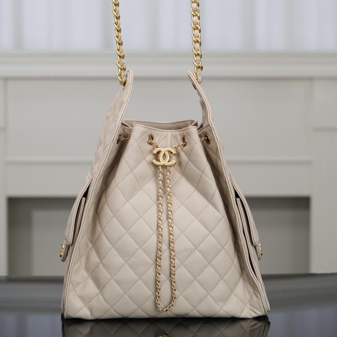 香奈兒水桶包包官網報價 香港長洲區 Chanel small hobo 抽繩水桶包 香檳金 魚子醬小號