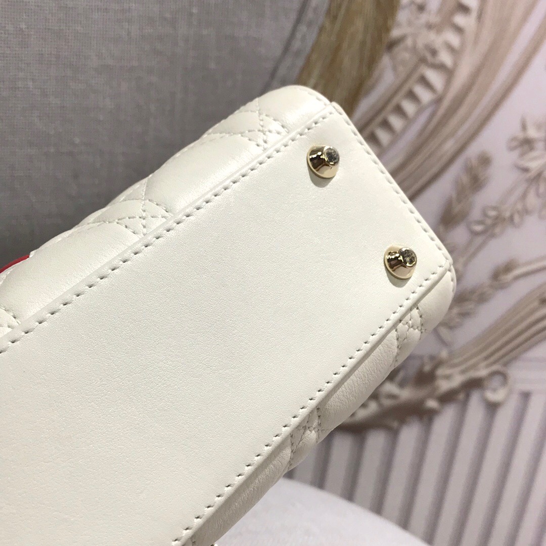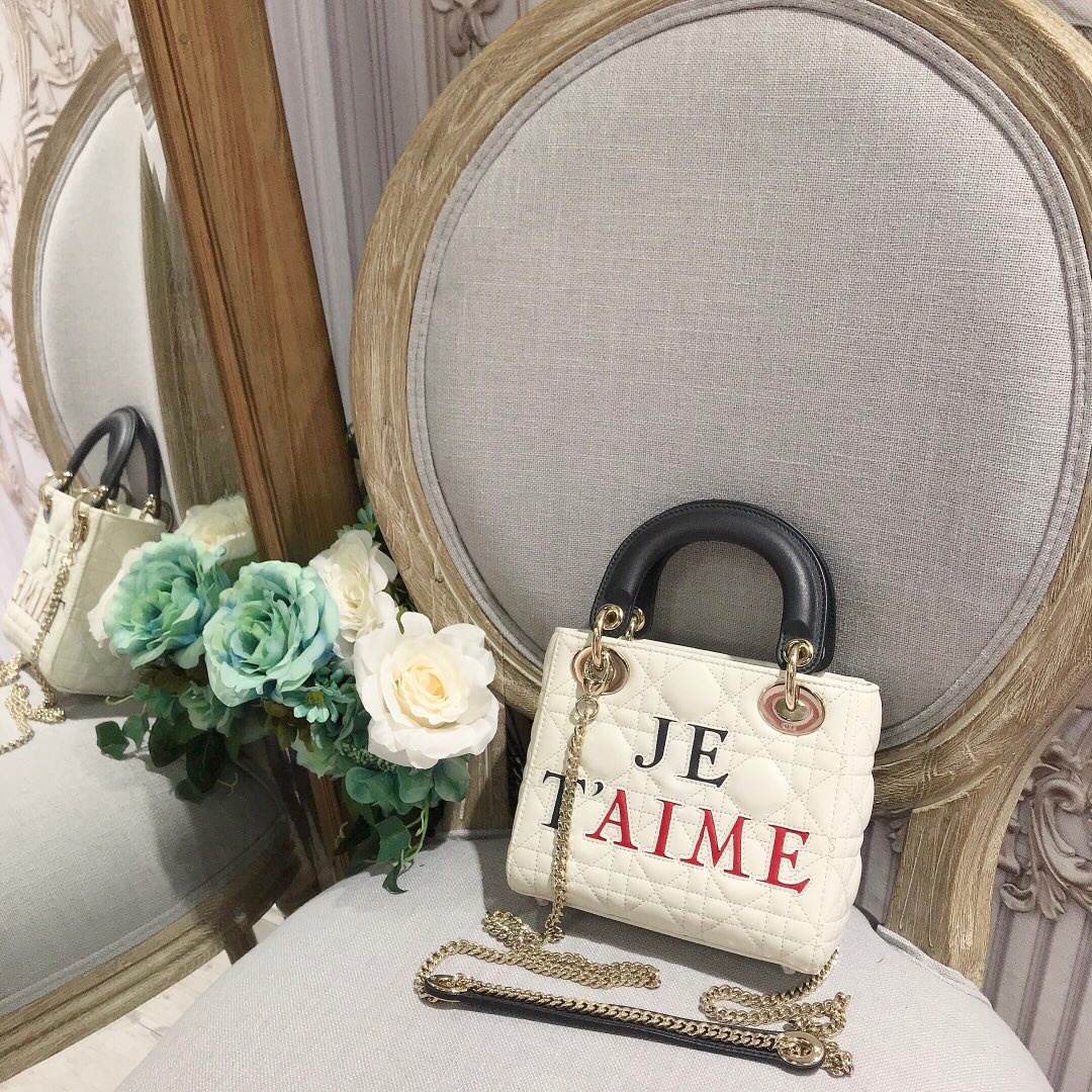 香港專櫃最新戴妃三格 LADY DIOR白色中號牛皮革J’AIME圖案手袋