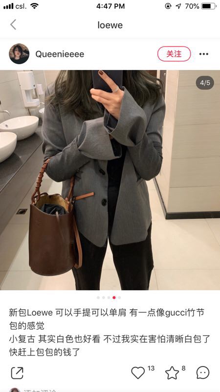 Loewe2019秋冬系列的全新黑白条纹 gate水桶手袋