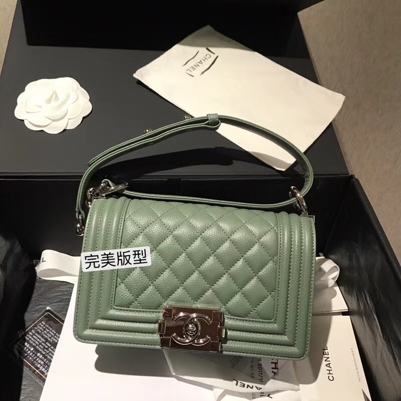 Boy中号抹茶绿菱格款,小羊皮做旧五金口盖包25cm