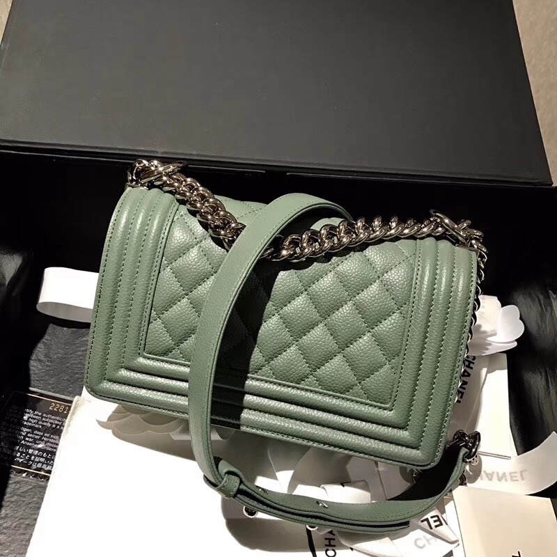 Boy中号迷你希腊绿菱格款口盖包,原厂牛皮鱼子酱球纹皮银色亮金单肩斜挎包女包