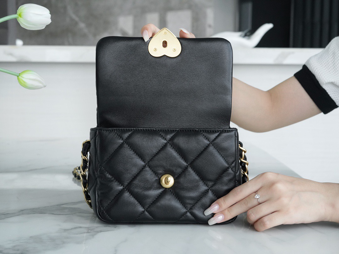Chanel香奈兒法瑯扣方胖子官網價格 23S新款CF方胖子黑色愛心法瑯扣