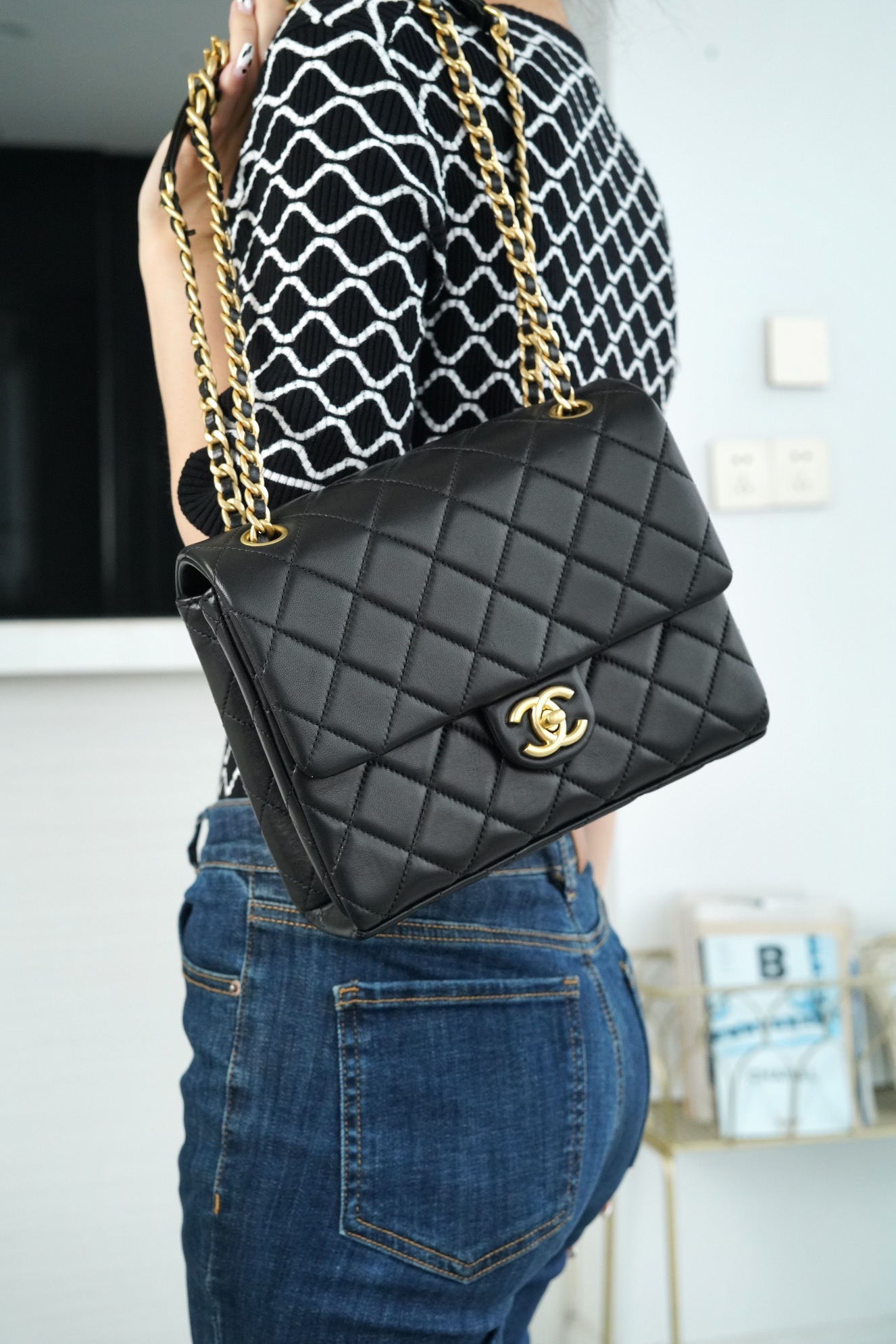 香奈兒飯盒包糾結大小 香港油麻地 CHANEL 新款 25c 飯盒包 黑金 hobo