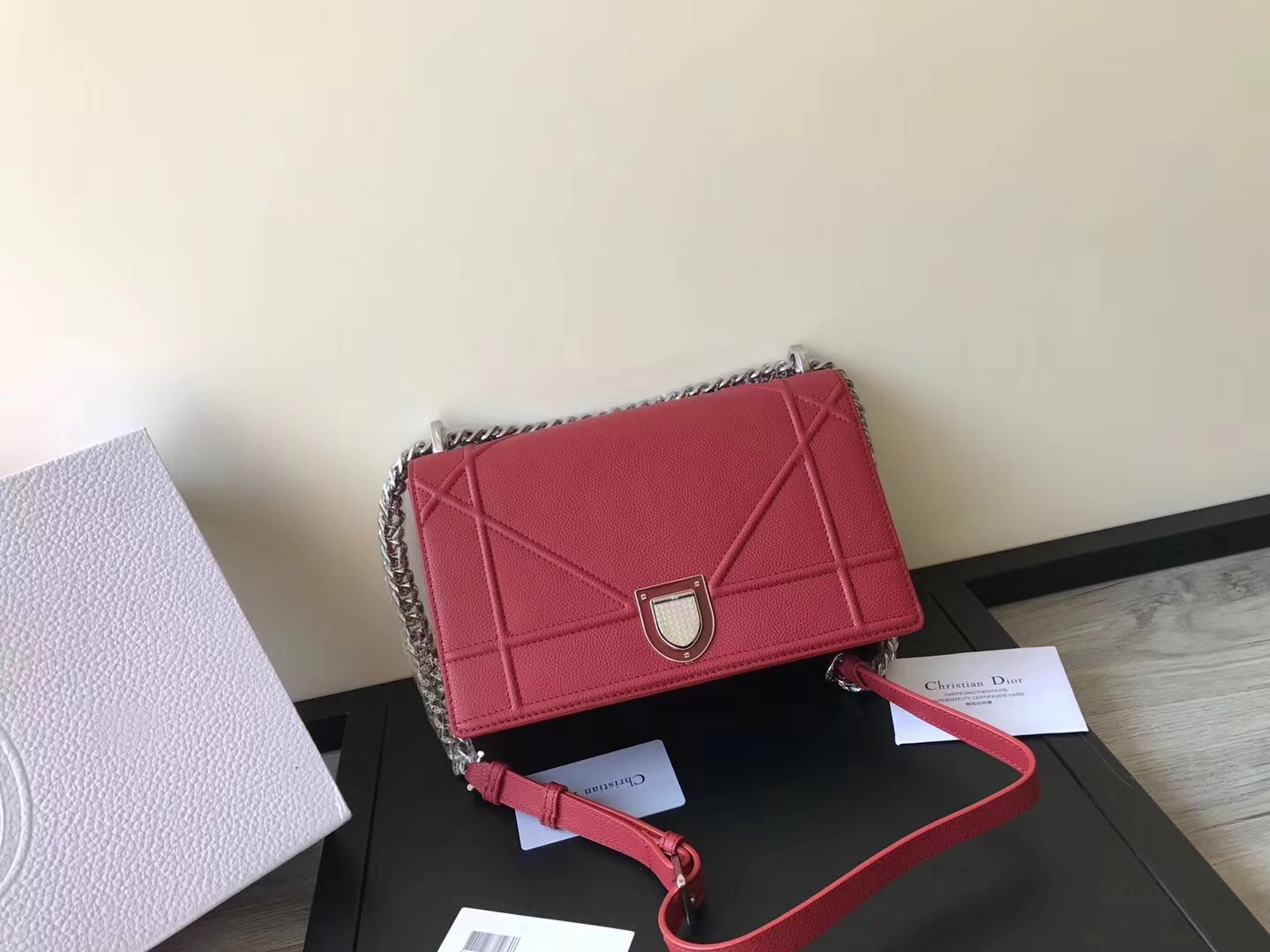 迪奥,Diorama 鱼子酱小牛皮,藤格纹图案链条单肩斜挎包