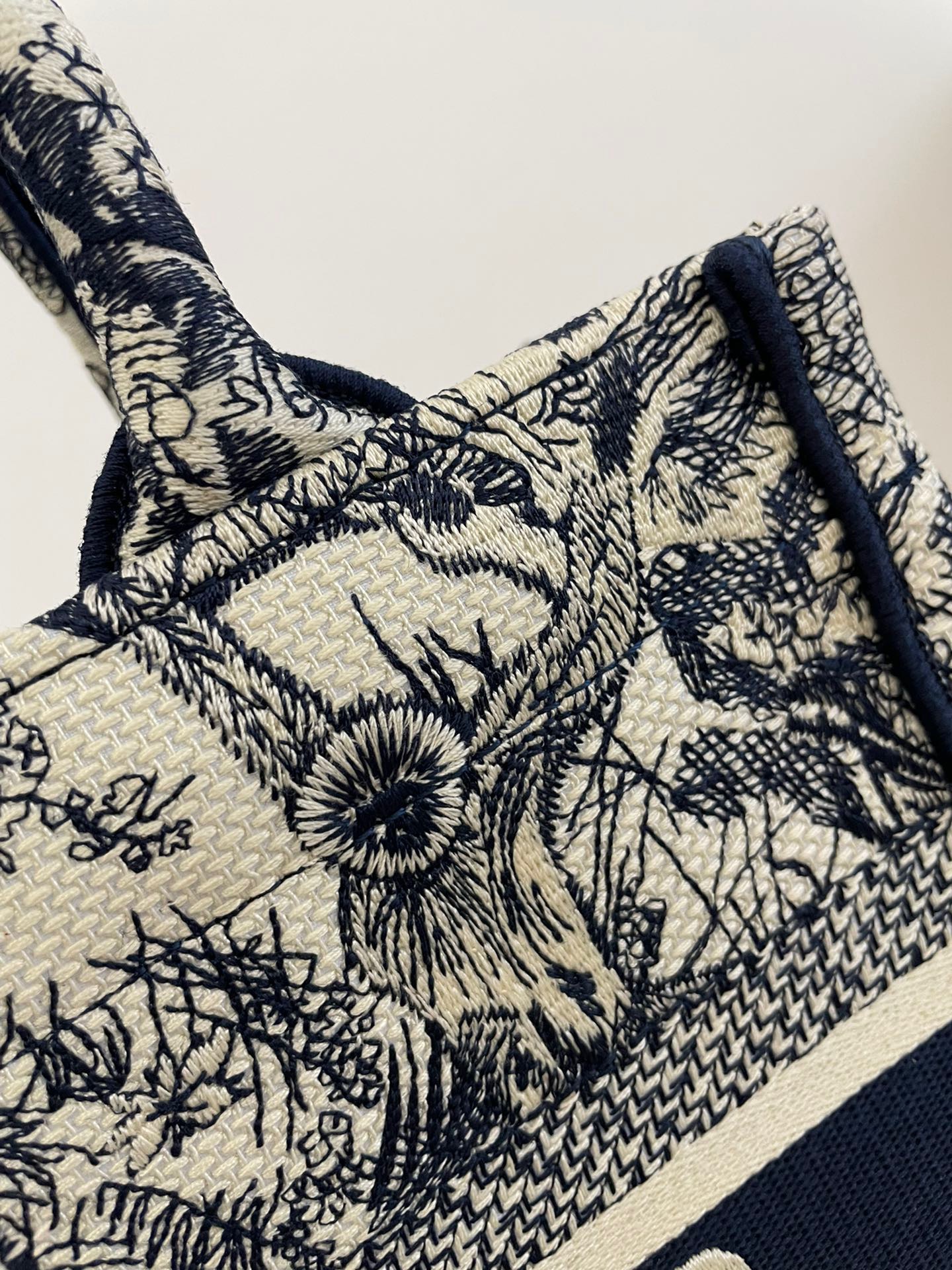 迪奧臺灣 Taiwan dior托特包尺寸 小號Tote老虎刺繡深藍色