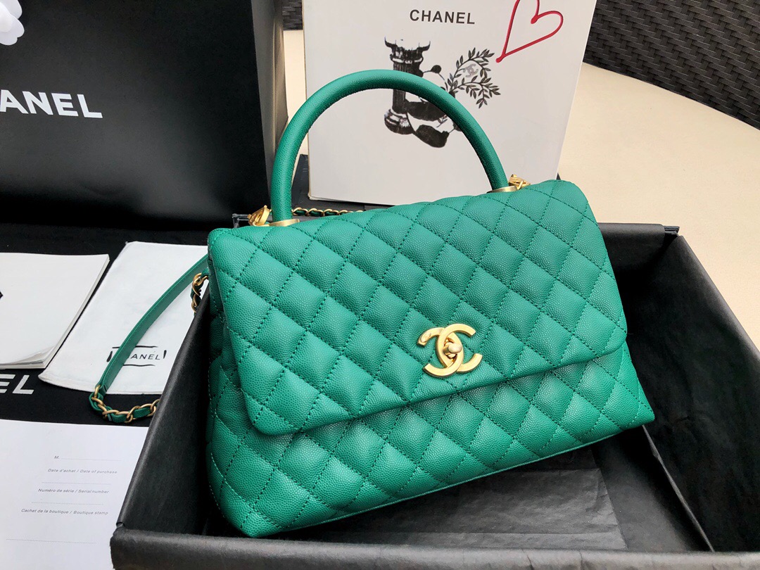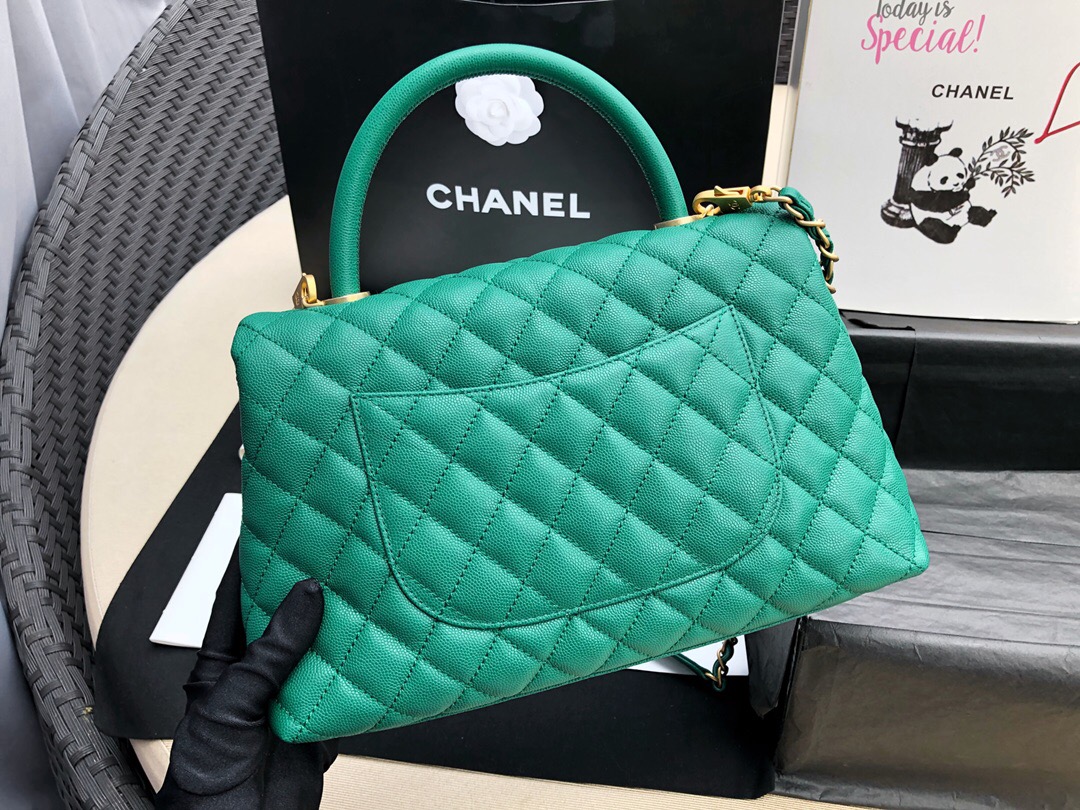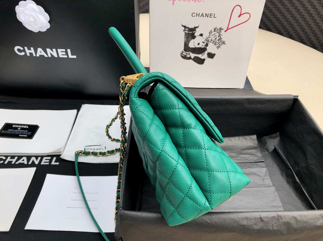 无锡 香奈儿手柄口盖包 Chanel coco handle中号 鱼子酱牛皮 绿色