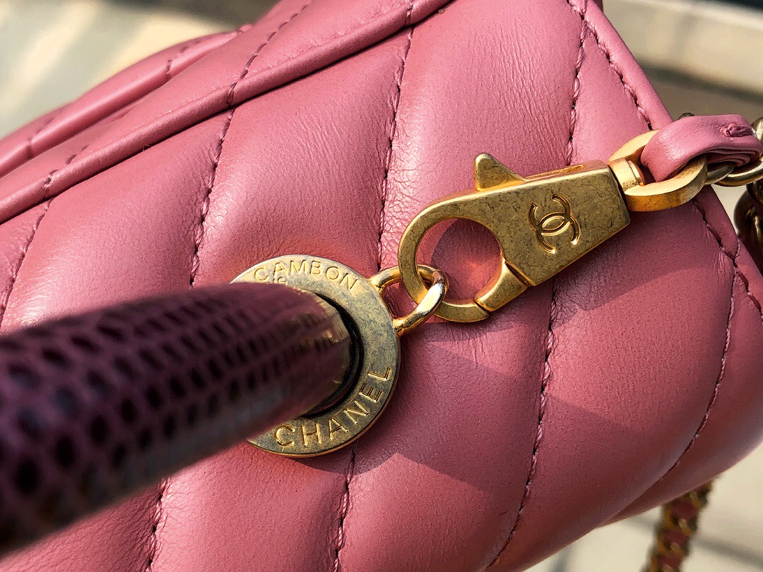 香奈儿口盖包配蜥蜴皮手柄 中号Chanel coco handle bag 油腊小牛皮玫红色