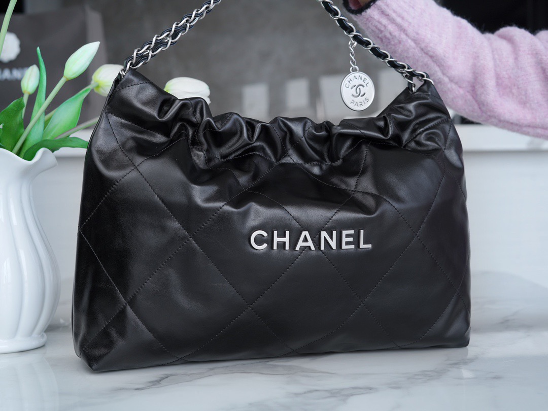 Chanel垃圾袋官網價 俄羅斯Russia Chanel 22手袋黑色銀扣 24C橫版垃圾袋