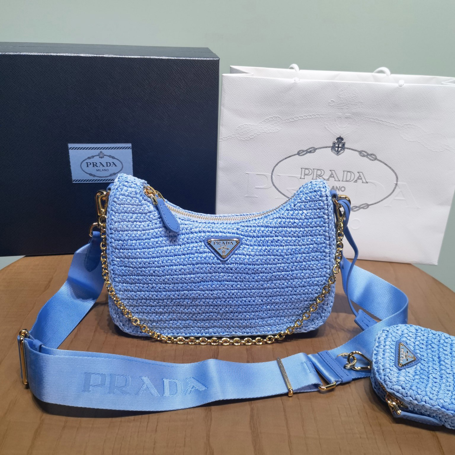 prada三合一包怎麼樣 普拉達 三合一草編款單肩斜挎包 1BH204草編