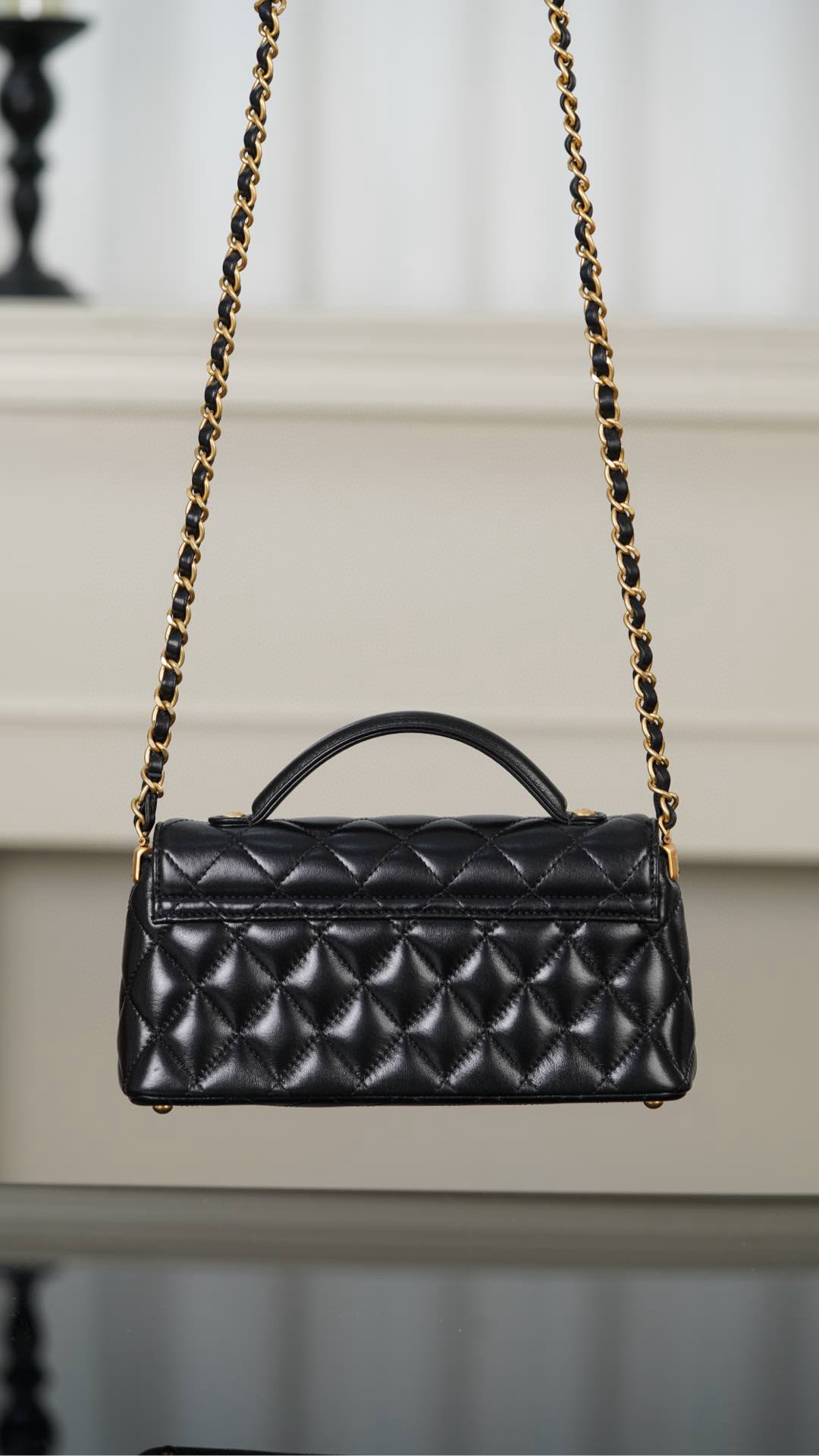小羊皮 的質感、黑金配色、菱格設計,復古時髦🖤,