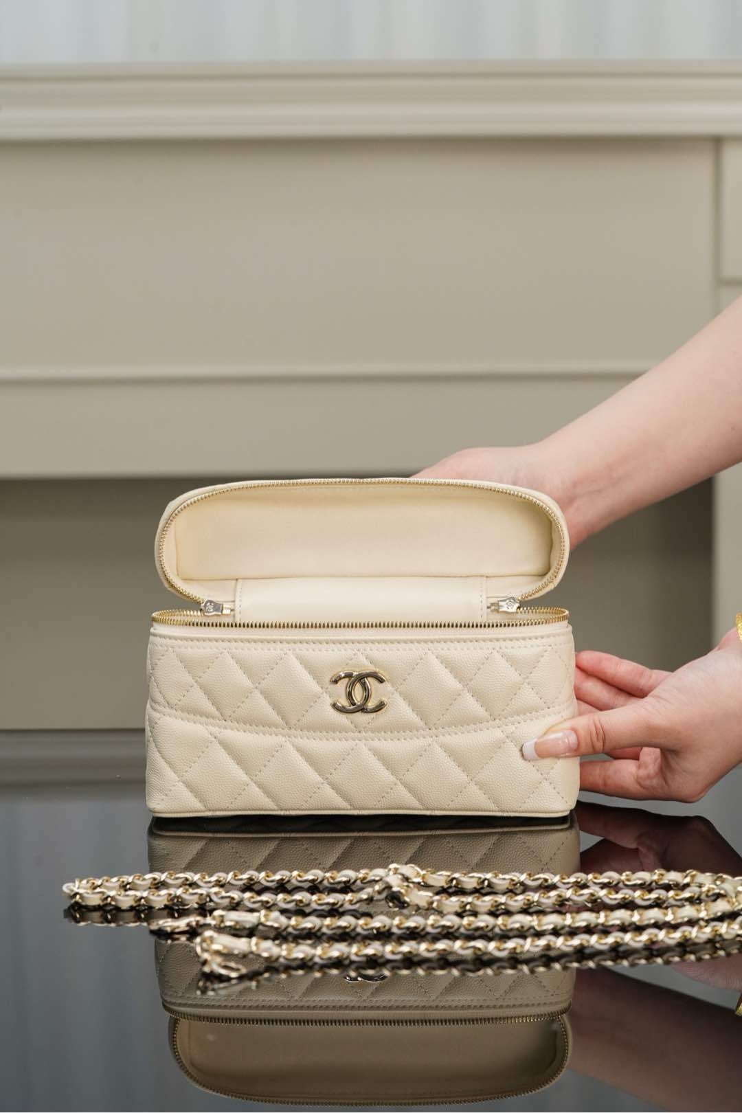 Saudi Arabia Dammam Saudi Arabia chanel 新款 手柄盒子包 荔枝牛皮 米白
