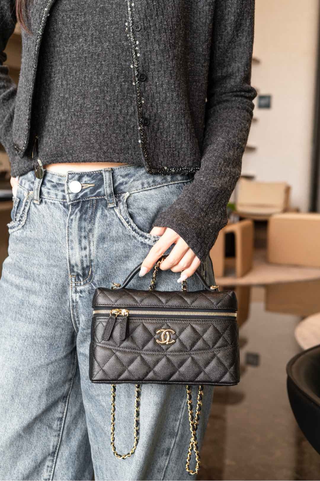 香奈兒盒子包上身圖 香港中環 chanel 魚子醬牛皮 雙𝐂盒子包