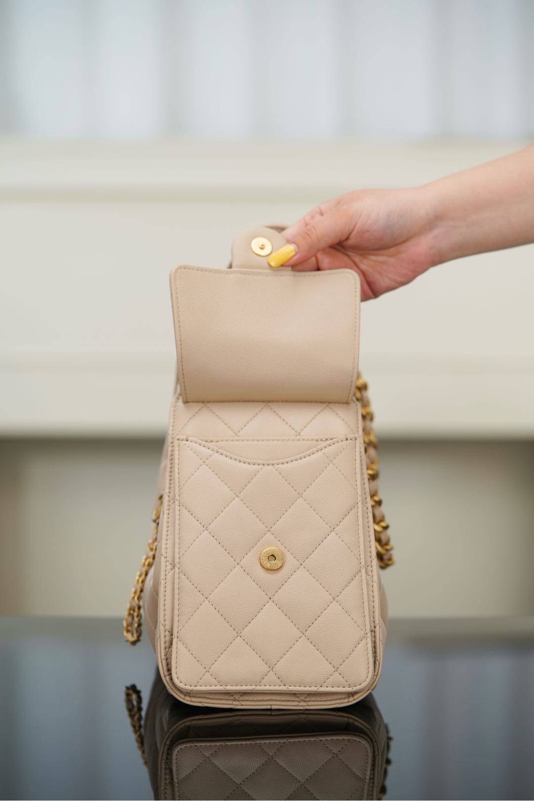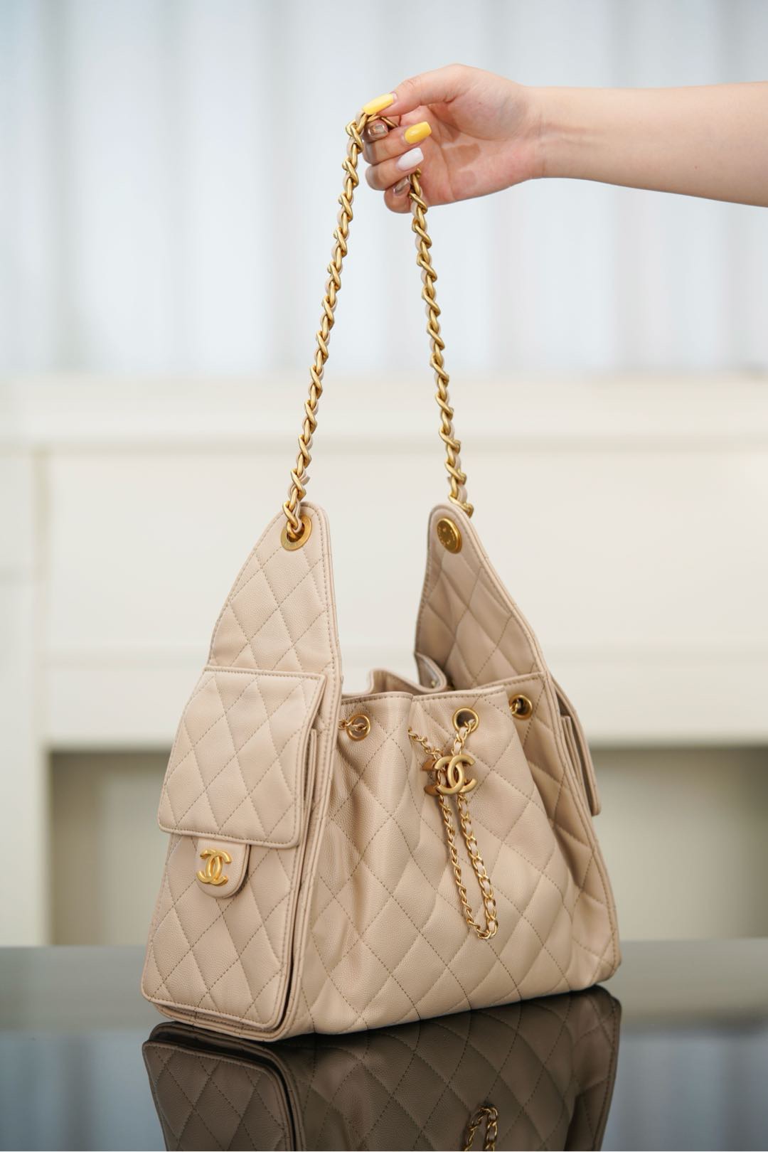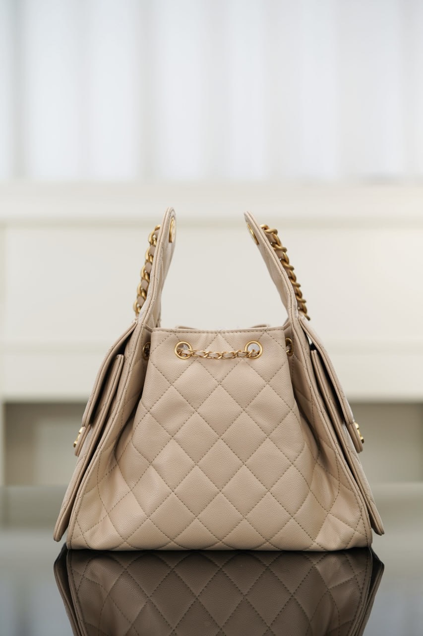 新加坡 Singapore CHANEL small hobo 抽繩水桶包 杏色魚子醬 小號