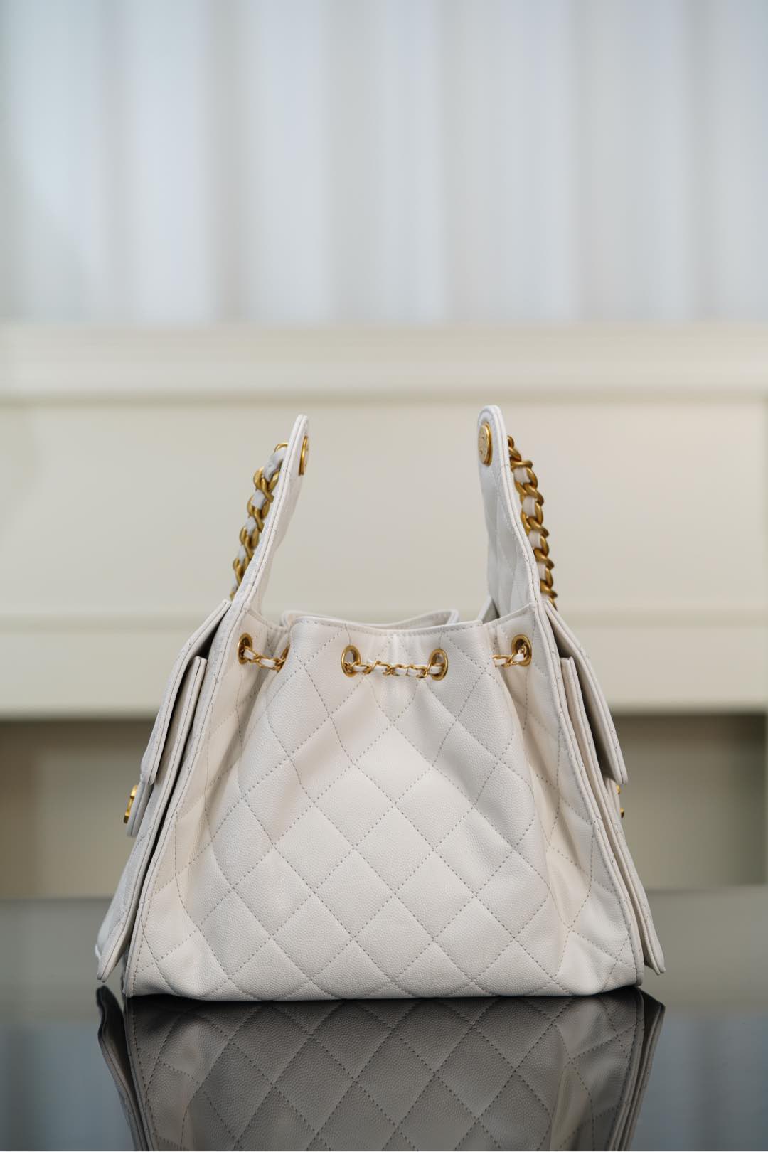 Singapore Kuala Lumpur CHANEL small hobo 抽繩水桶包 白色魚子醬 小號