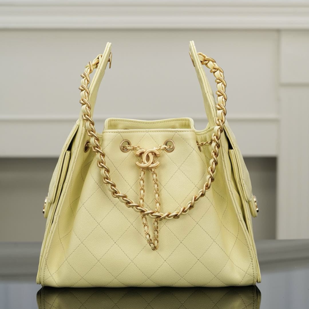 香港黃大仙 香奈兒CHANEL 25S small hobo 杏色魚子醬大號 抽繩水桶包