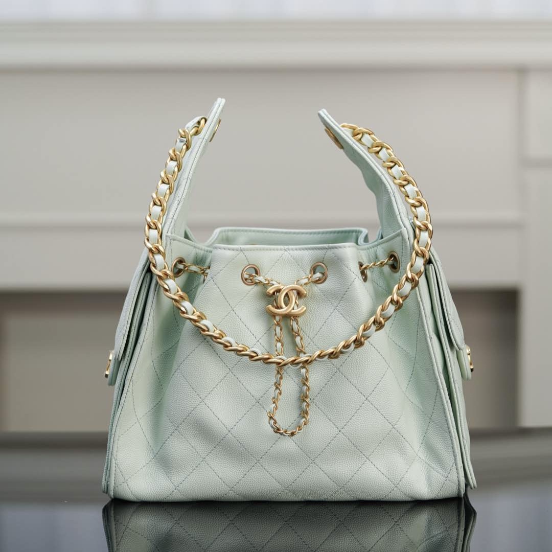 chanel魚子醬和荔枝皮區別 香港南區華富 香奈兒 small hobo抽繩水桶包 薄荷綠小號