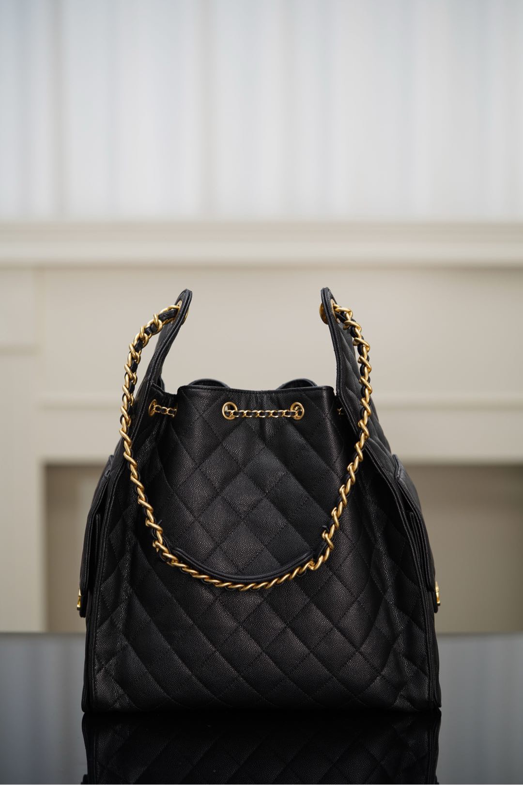 香港黃大仙 香奈兒CHANEL 25S small hobo 杏色魚子醬大號 抽繩水桶包