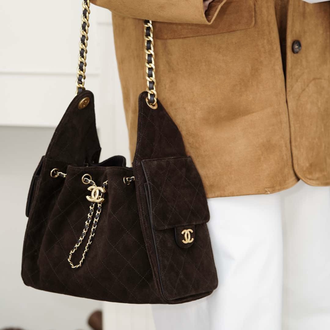 香奈兒25bag上市時間 臺灣臺北市信義區 香奈兒 黑色磨砂鹿皮 hobo小號 抽繩水桶包