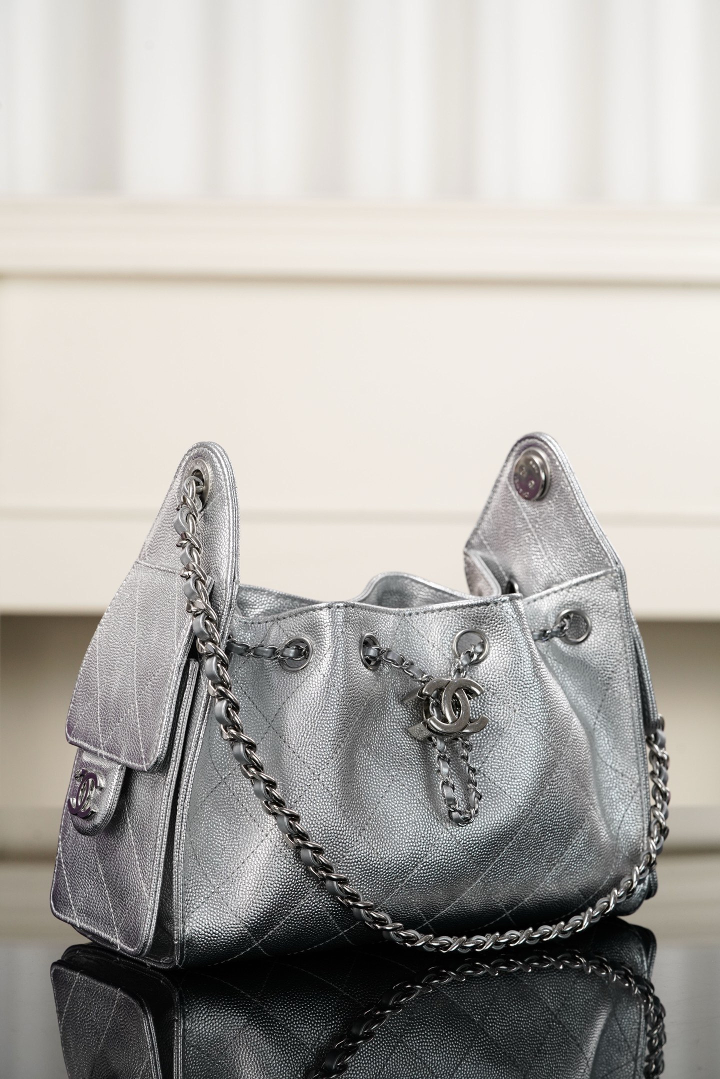 chanel魚子醬和荔枝皮區別 香港南區華富 香奈兒 small hobo抽繩水桶包 薄荷綠小號