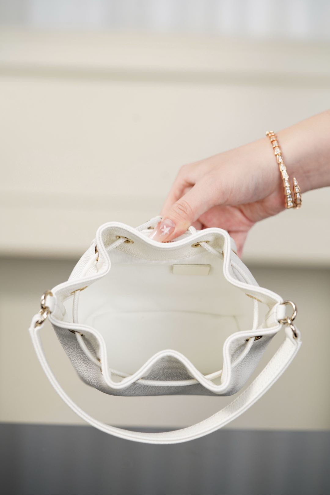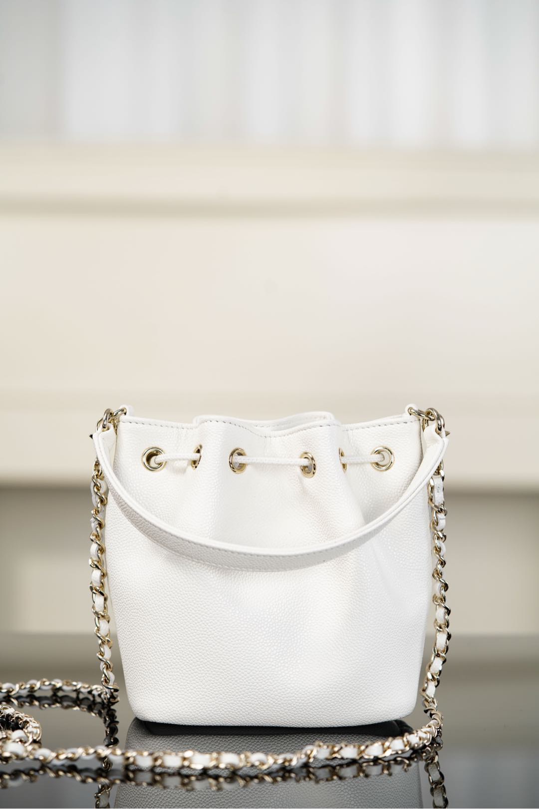 United Arab Emirates CHANEL 25B Caviar Leather Mini Chain Drawstring Small Bucket (White)