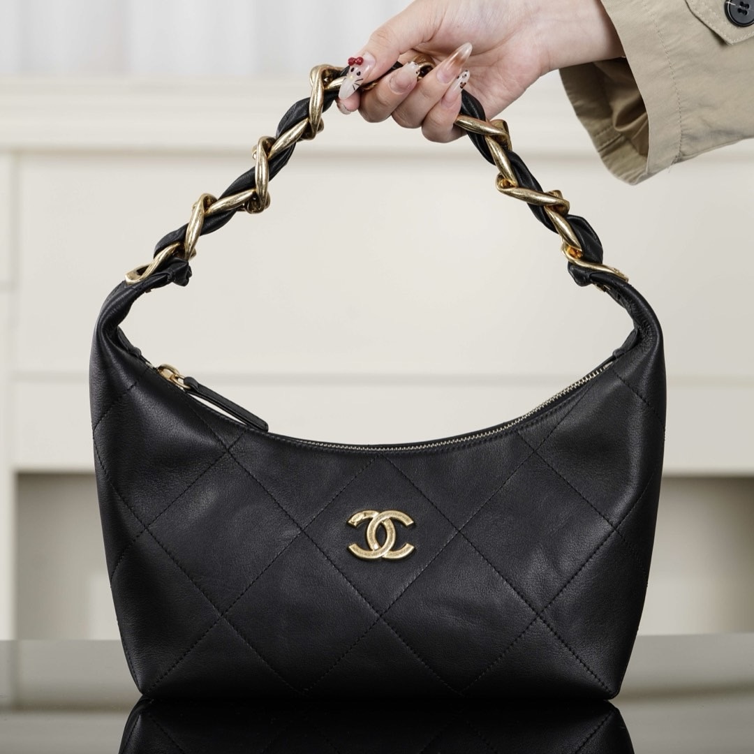 chanel品牌 臺灣 Taiwan 香奈兒 Hobo 黑金羊皮 購物袋