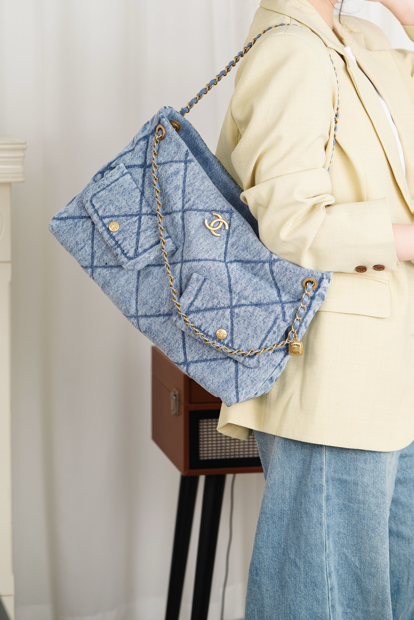 必備大包 慵懶隨性的水洗牛仔 經典菱格紋與雙𝐂五金
