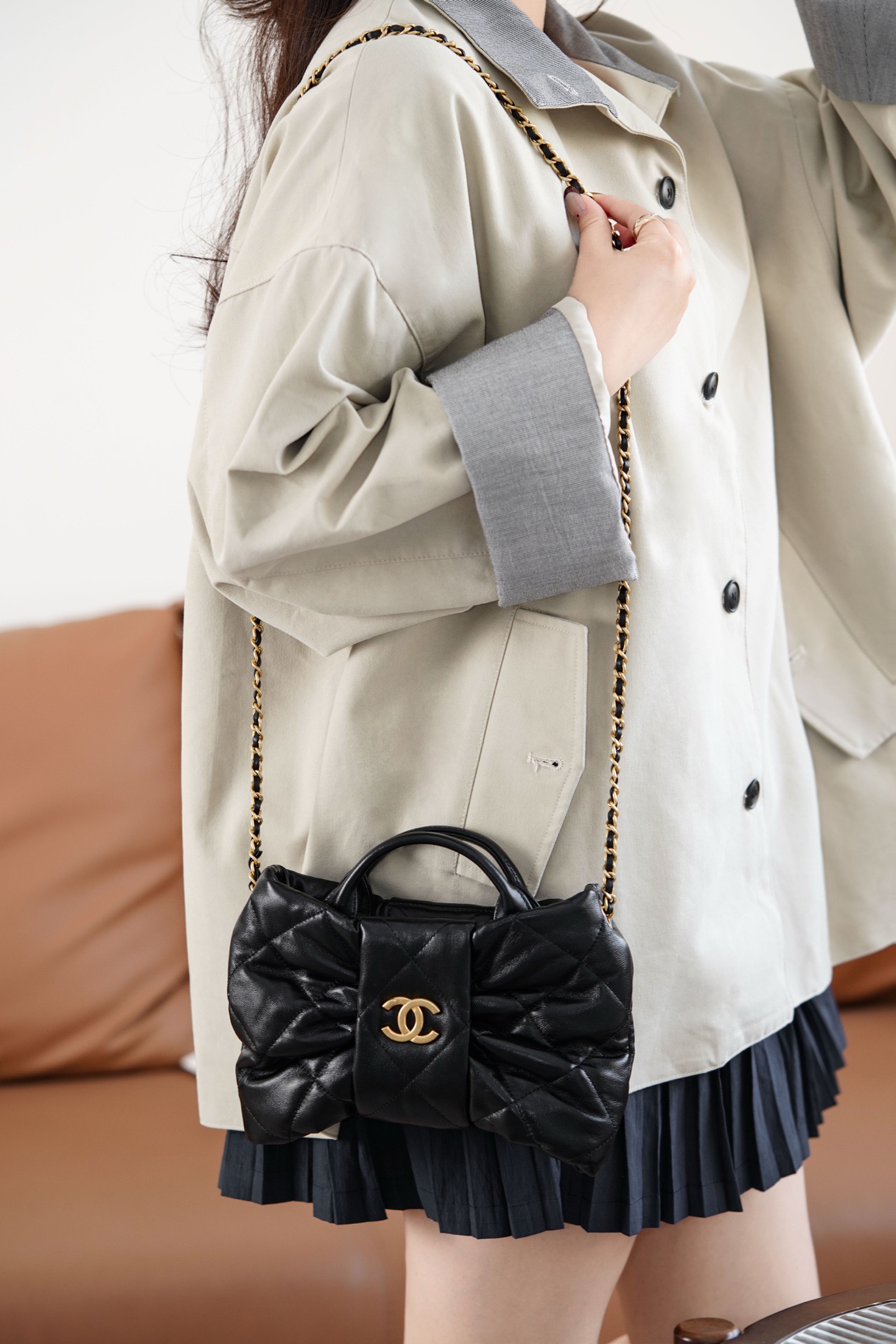 Chanel買牛皮還是羊皮 Singapore CHANEL 蝴蝶結手袋 迷你黑金 sheepskin