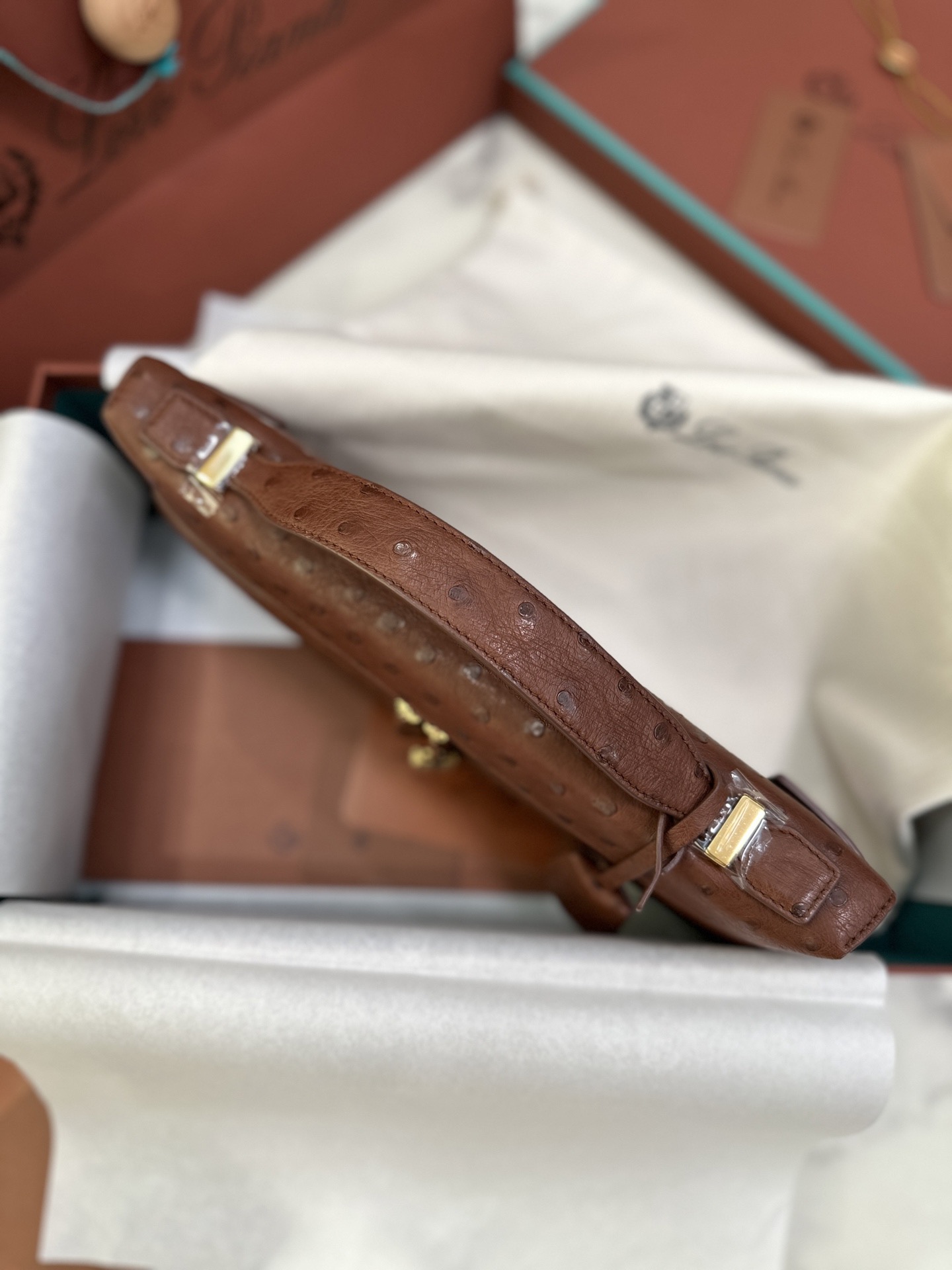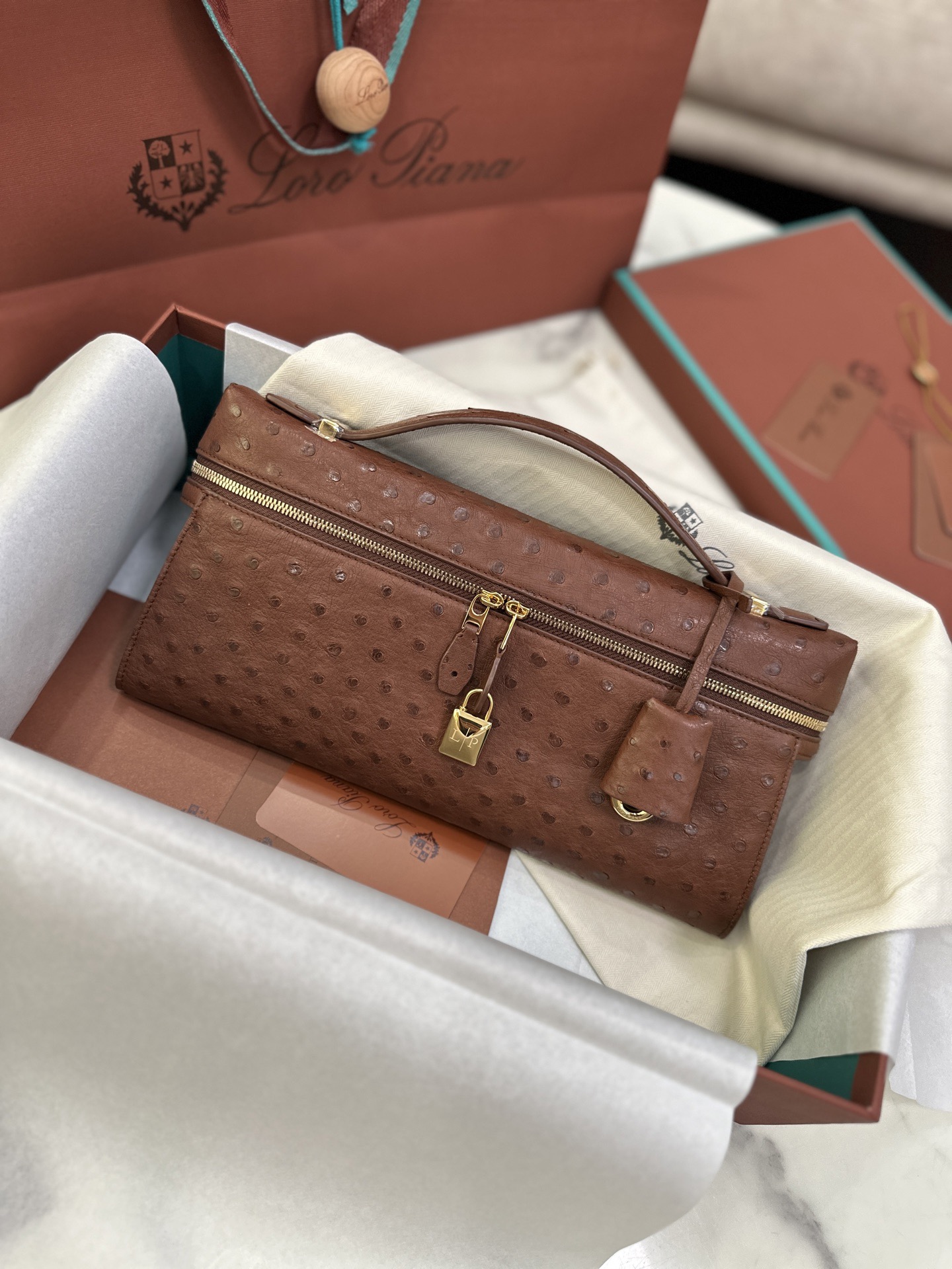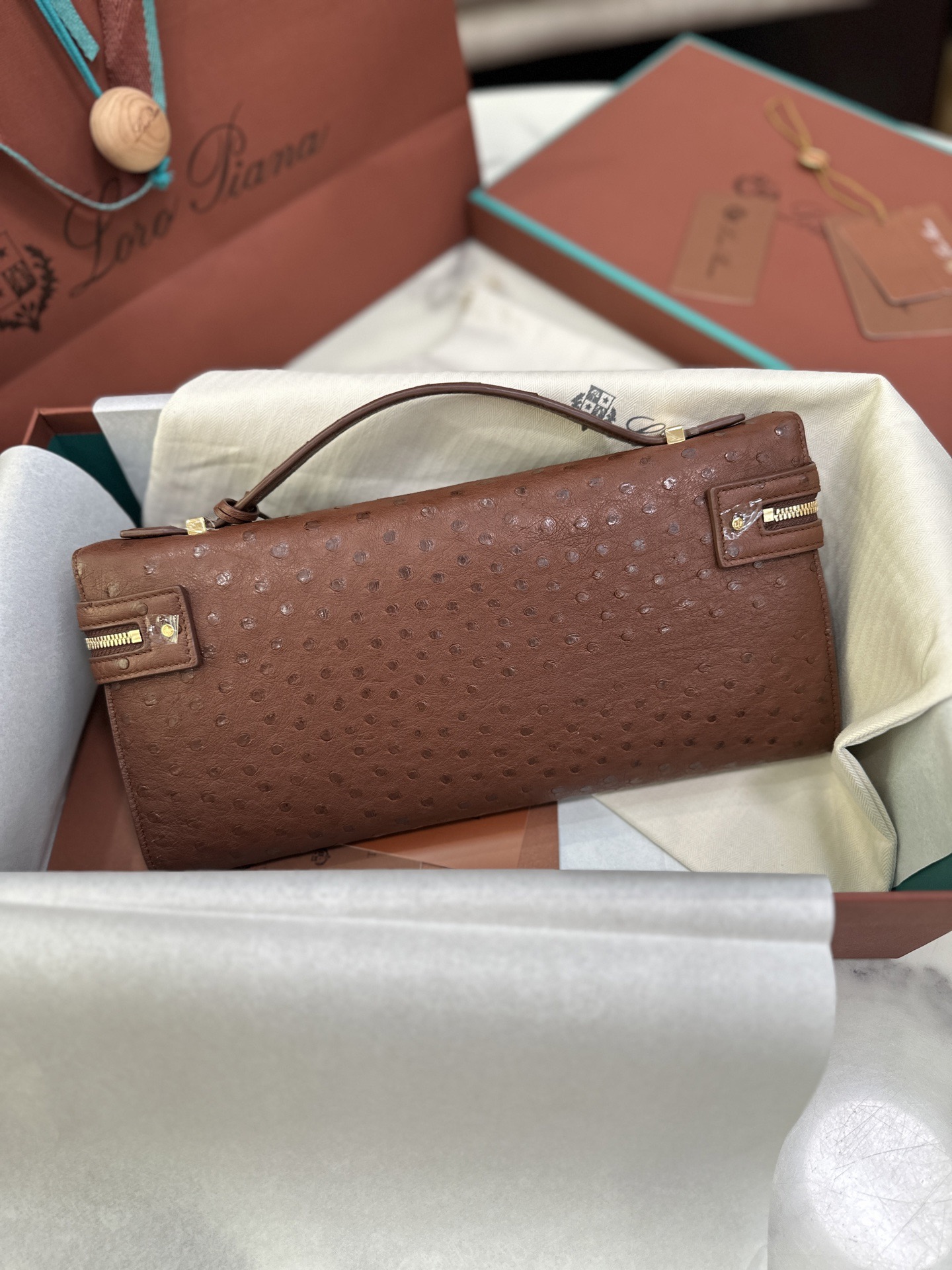 臺灣 Loro Piana諾悠翩雅 Extra Clutch L29 Ostrich 鴕鳥皮 焦棕色 手拿包