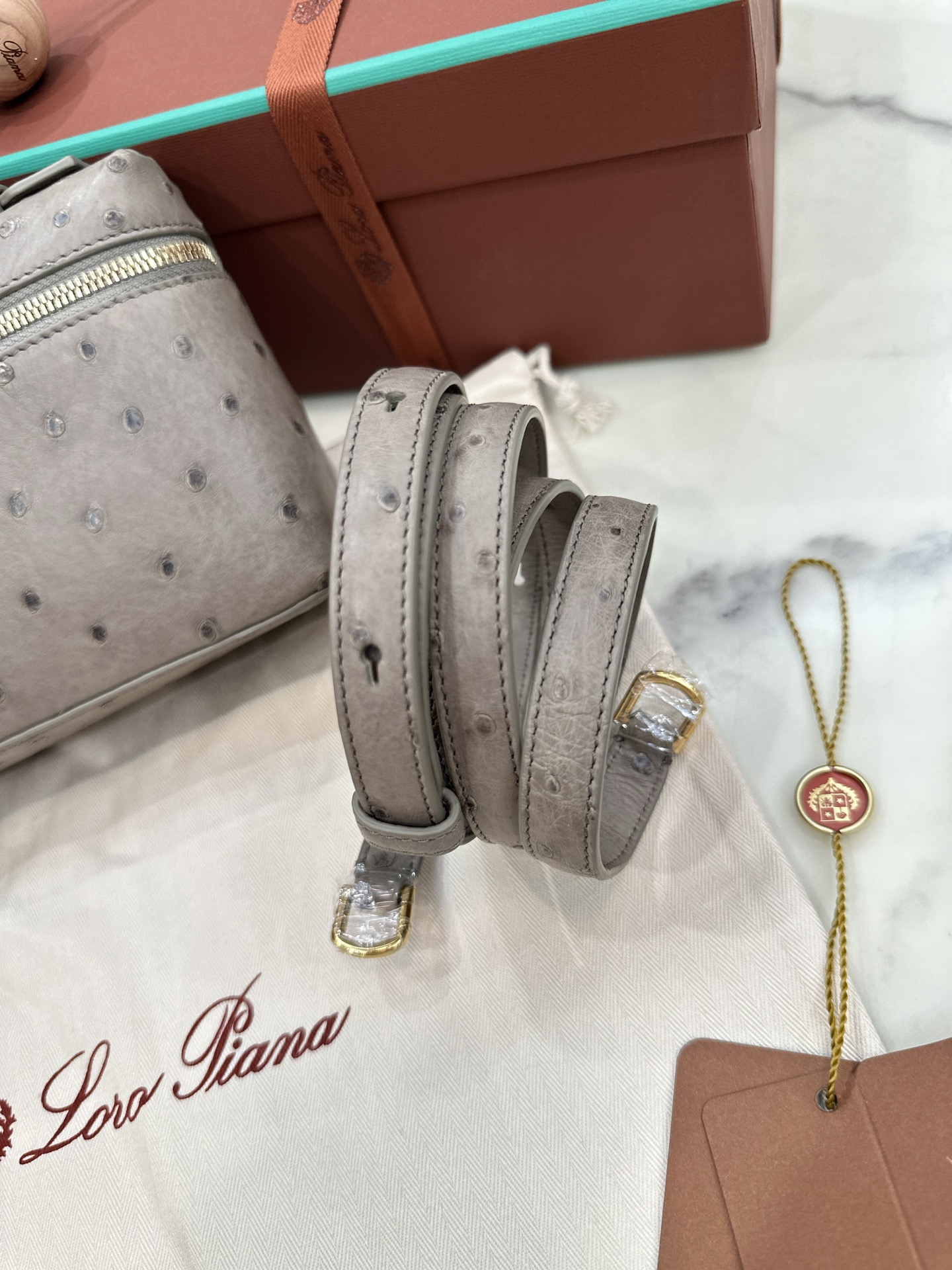 福建 Loro Piana Extra Poket L19 Ostrich leather 高端系列鴕鳥皮 深灰 金