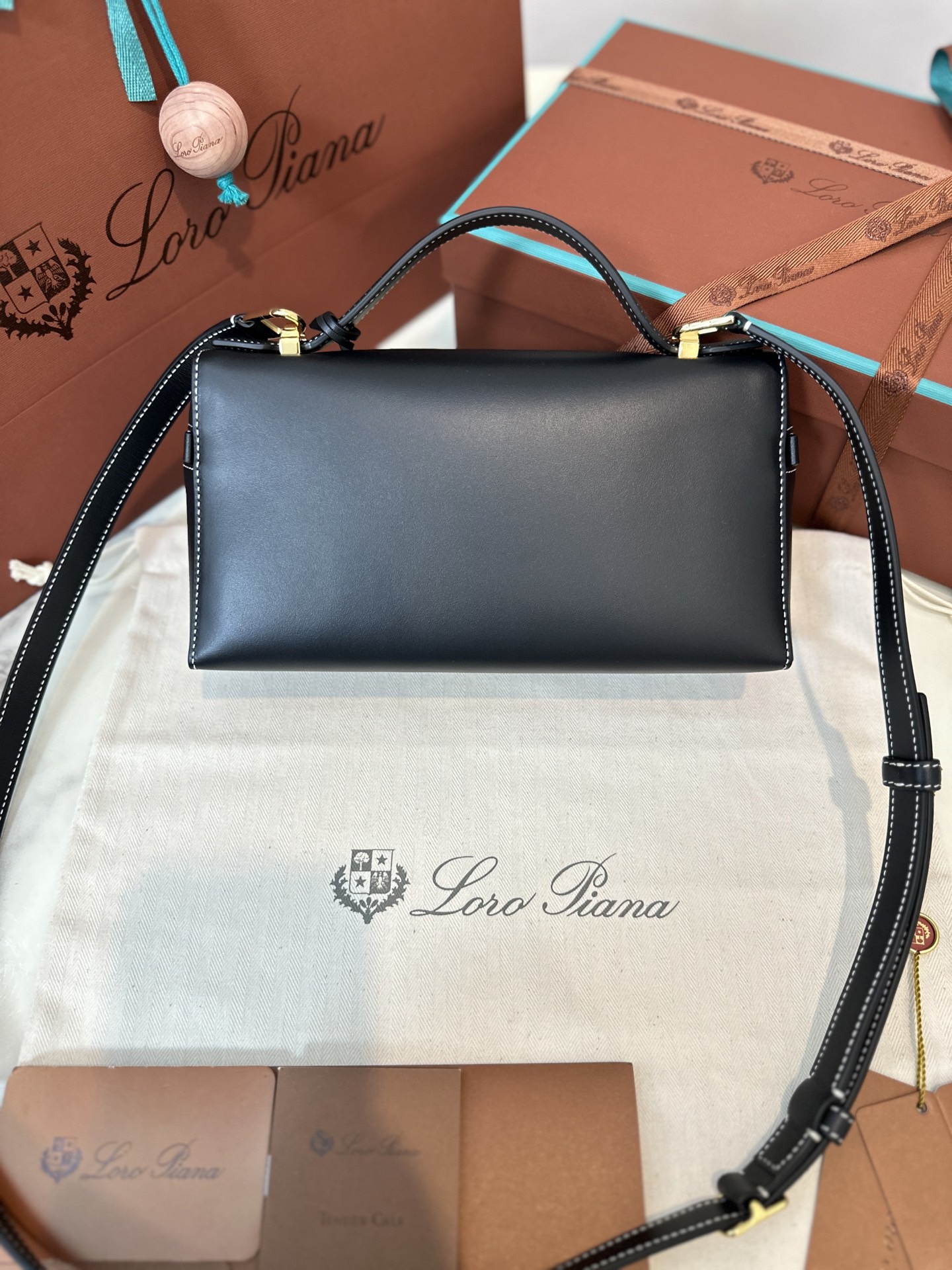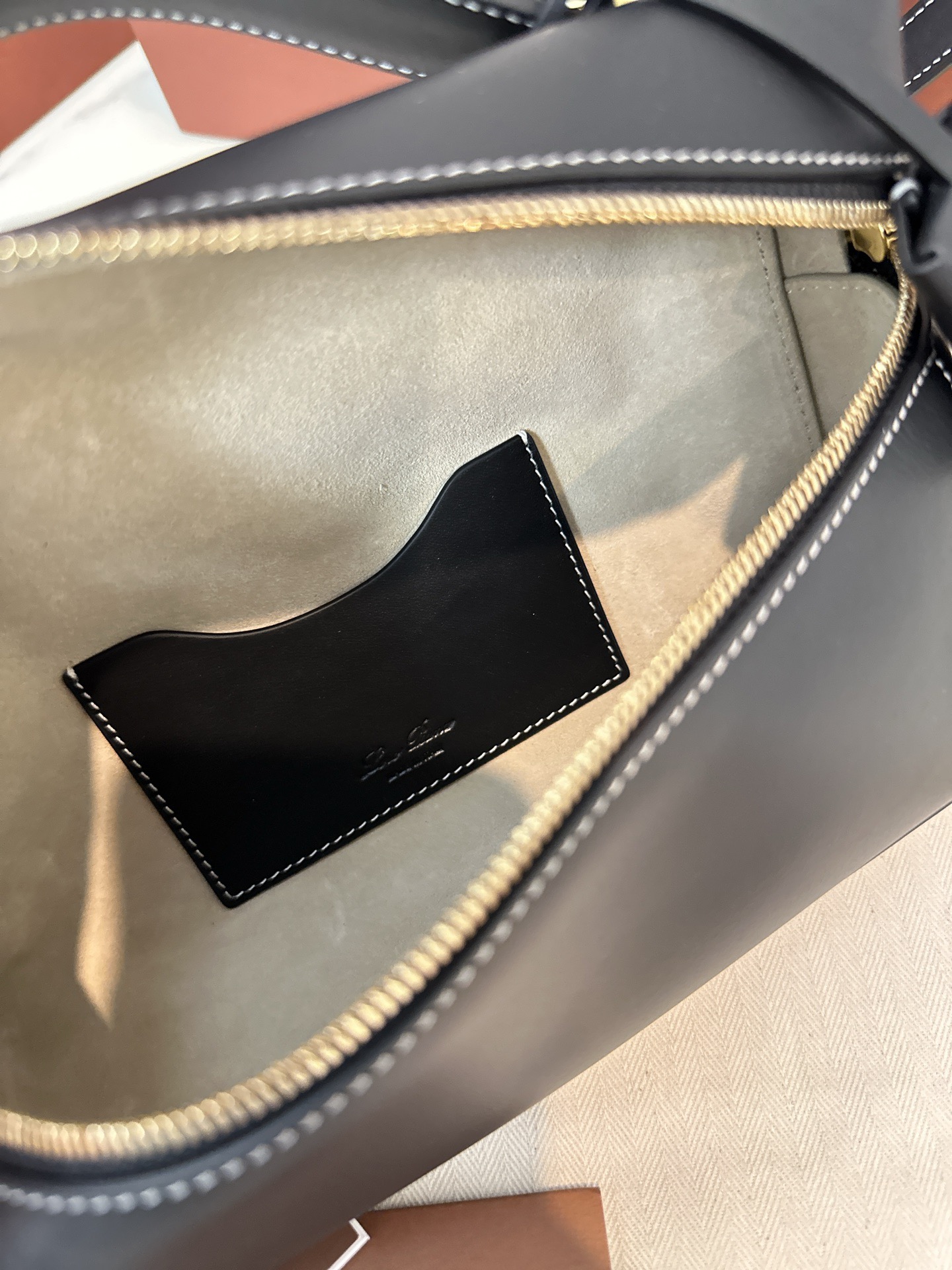 loro piana品牌logo故事 沉阳 诺悠翩雅 Extra bag L23 平纹皮黑色 白线