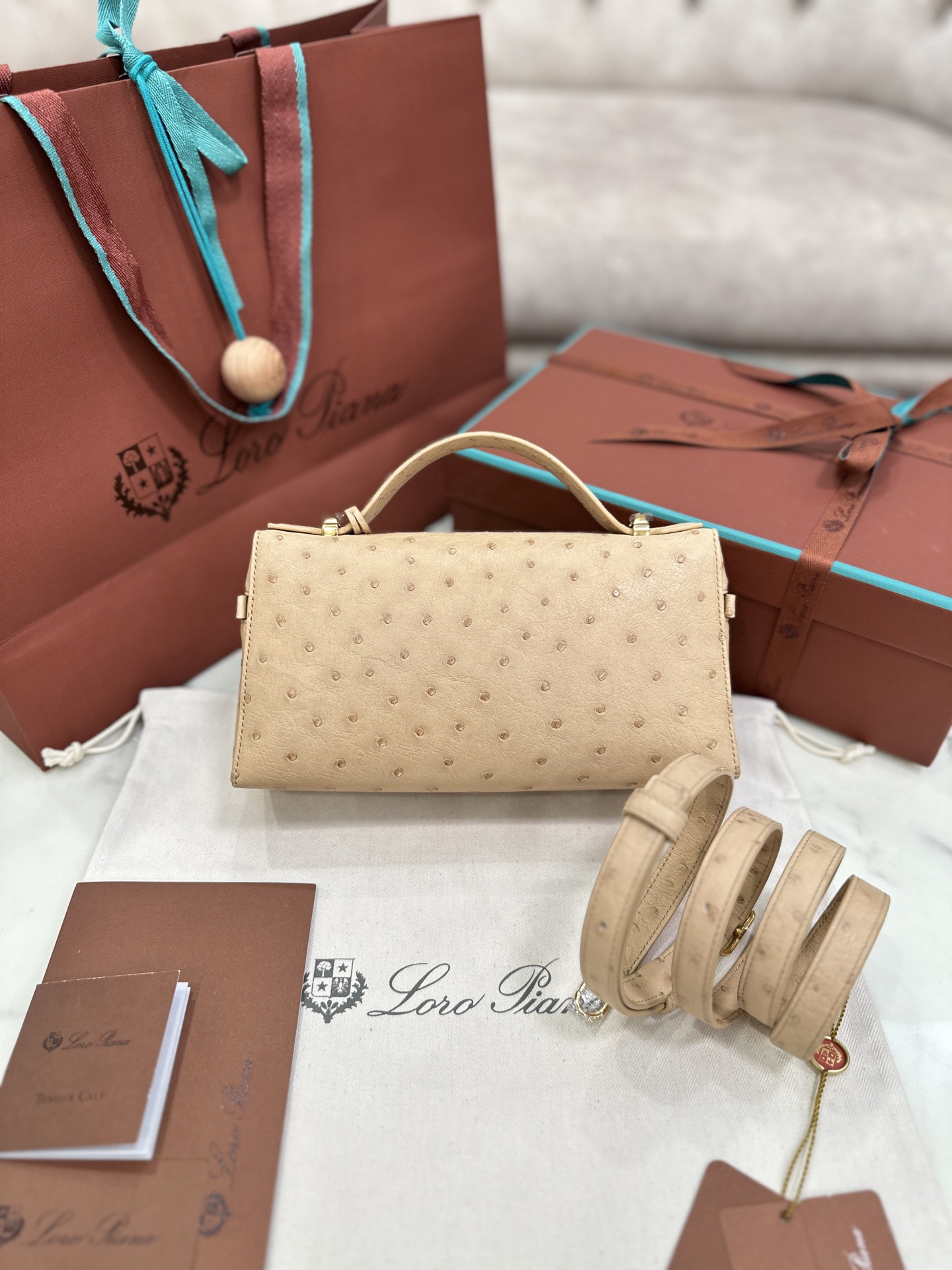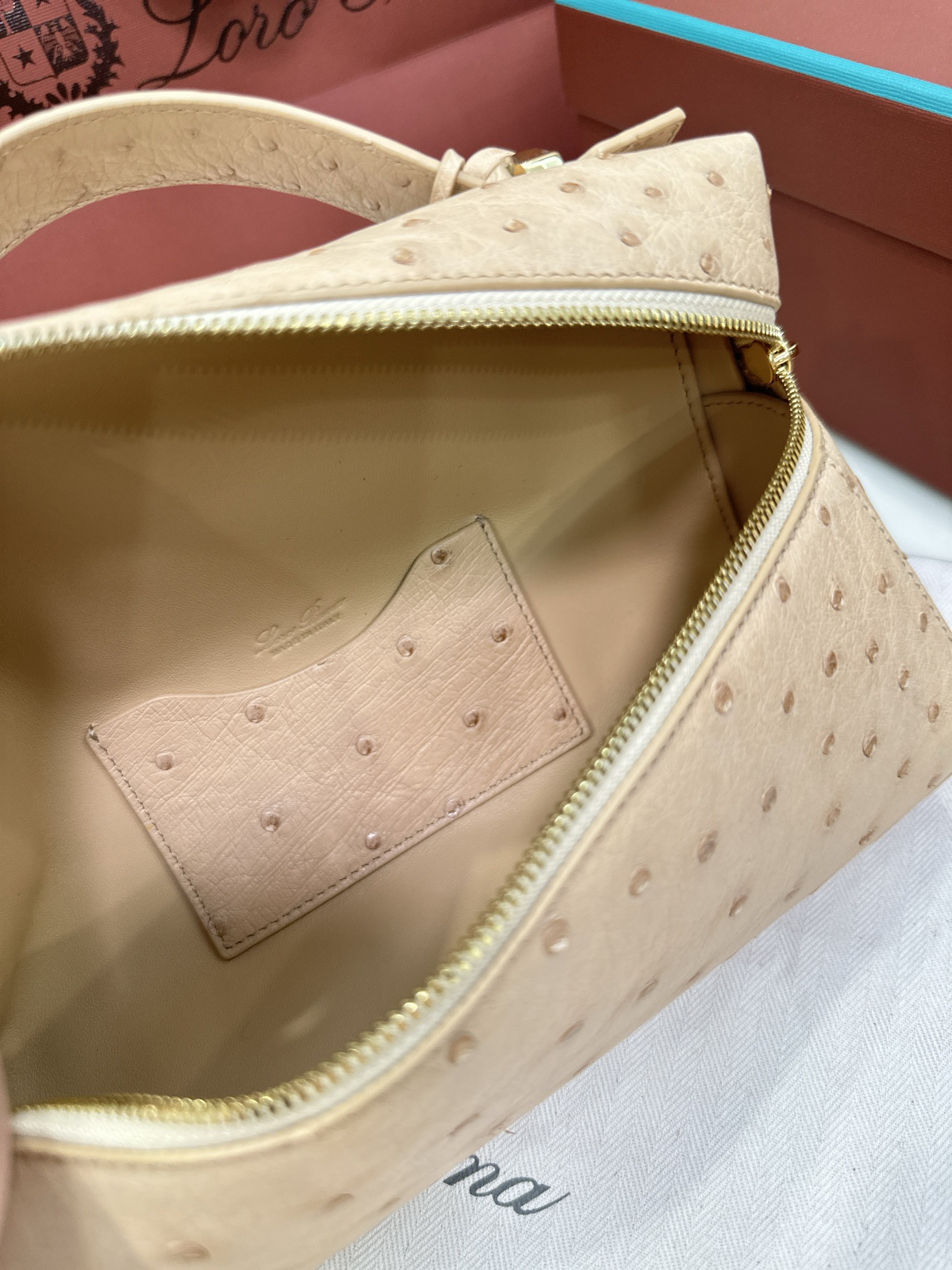 loropiana官網價格 Malaysia loro piana Extra bag Ostrich leather Chai 奶茶色金扣