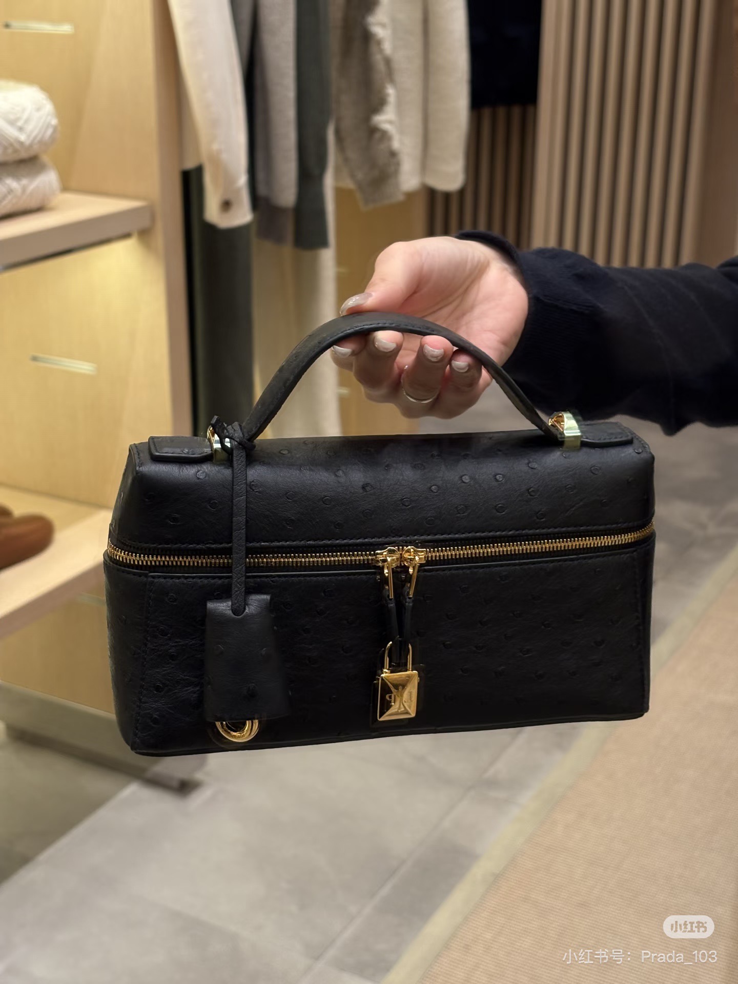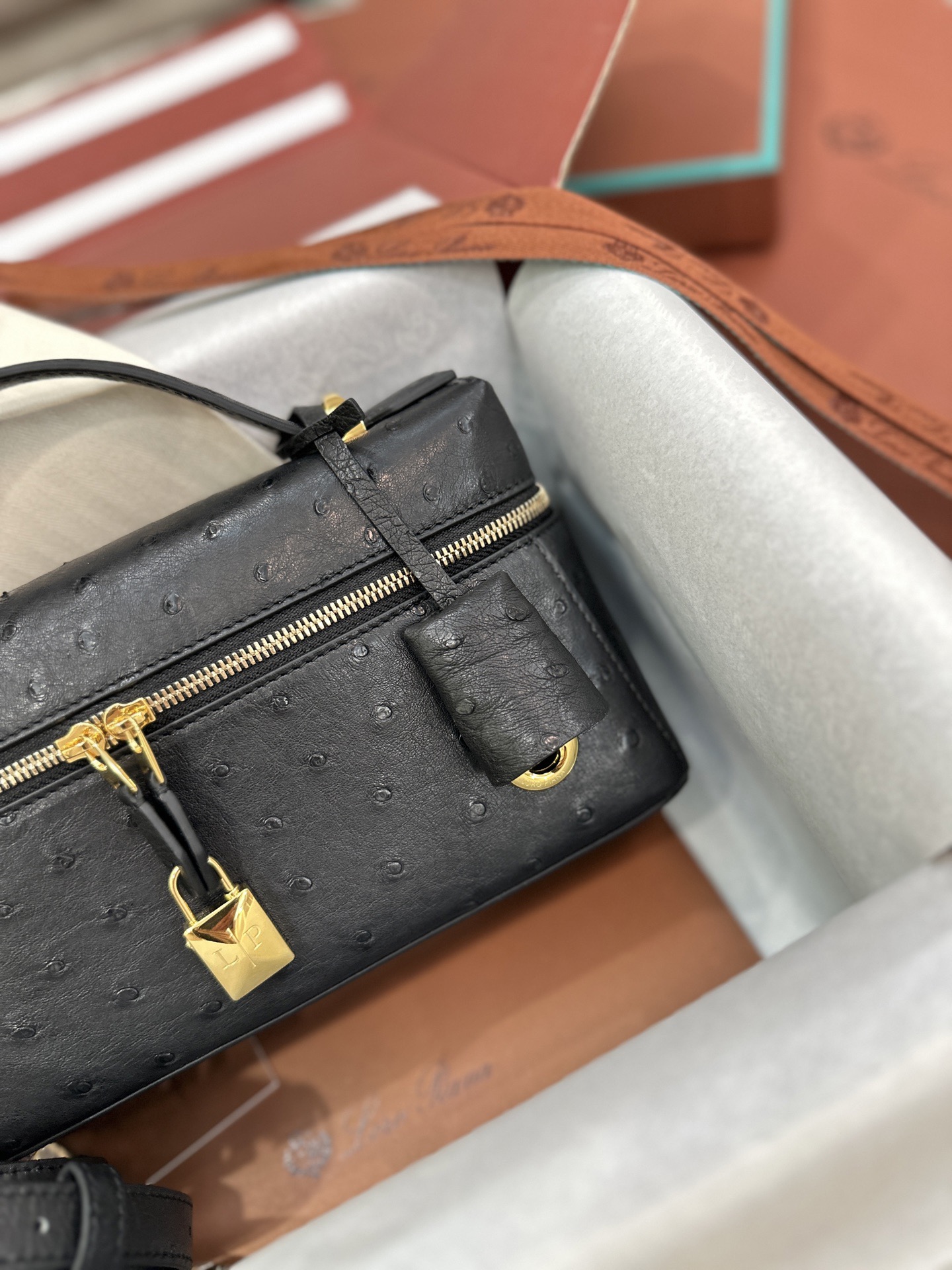 印度尼西亞 Indonesia loro piana Extra bag Ostrich leather Noir 黑色
