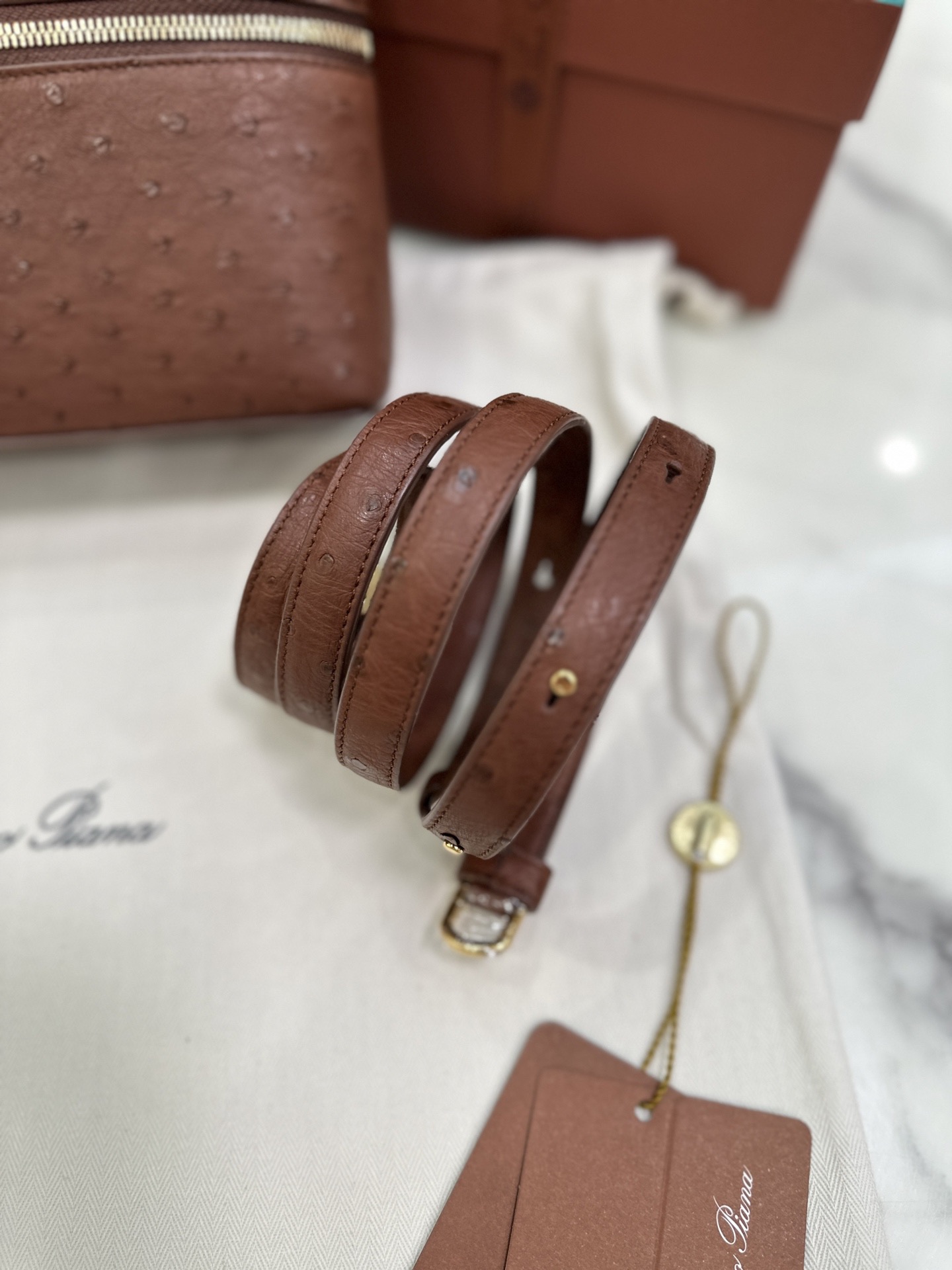 南京 諾悠翩雅 loro piana Extra Poket 19cm 鴕鳥皮 深巧可可色 银扣