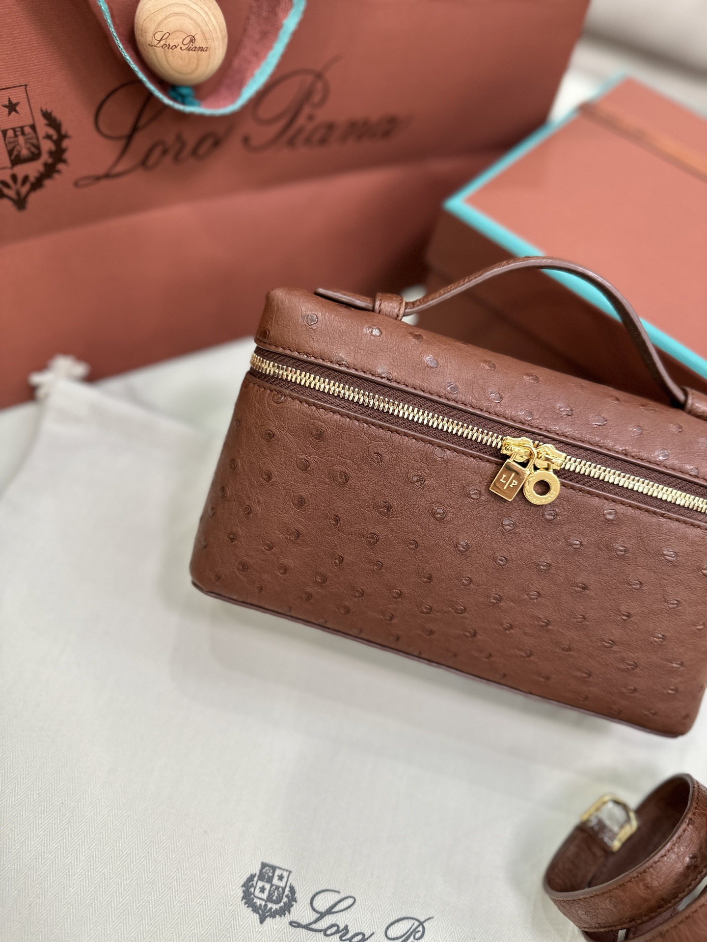 江蘇 諾悠翩雅 loro piana Extra Poket 19cm 鴕鳥皮 深巧可可色 银扣