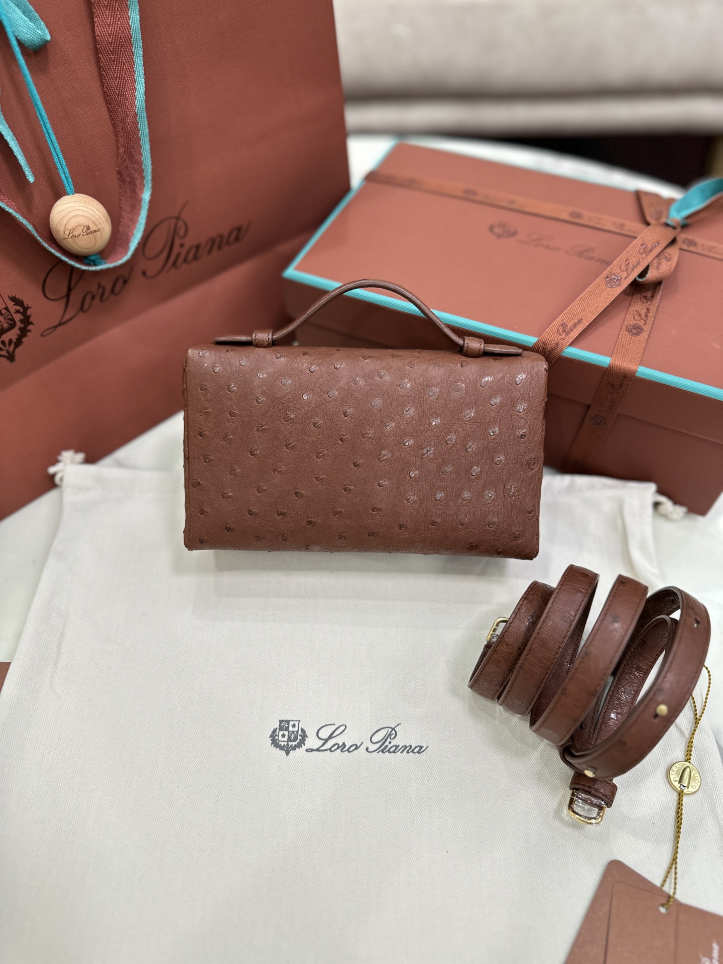 新疆 Loro Piana Extra Poket 19cm Ostrich leather 鴕鳥皮 蜜糖棕 銀扣