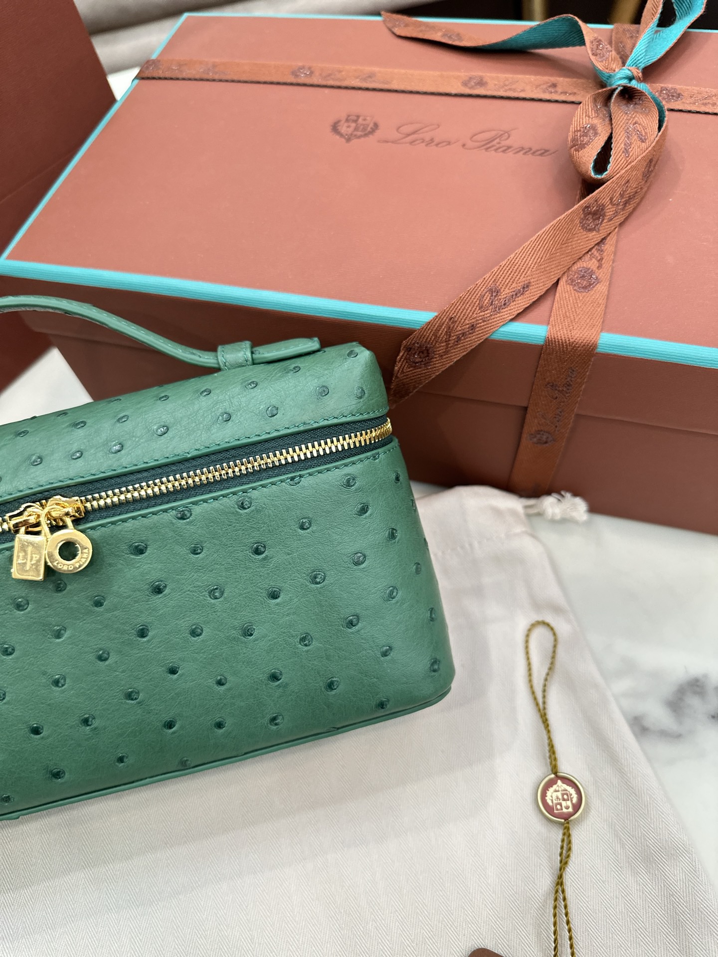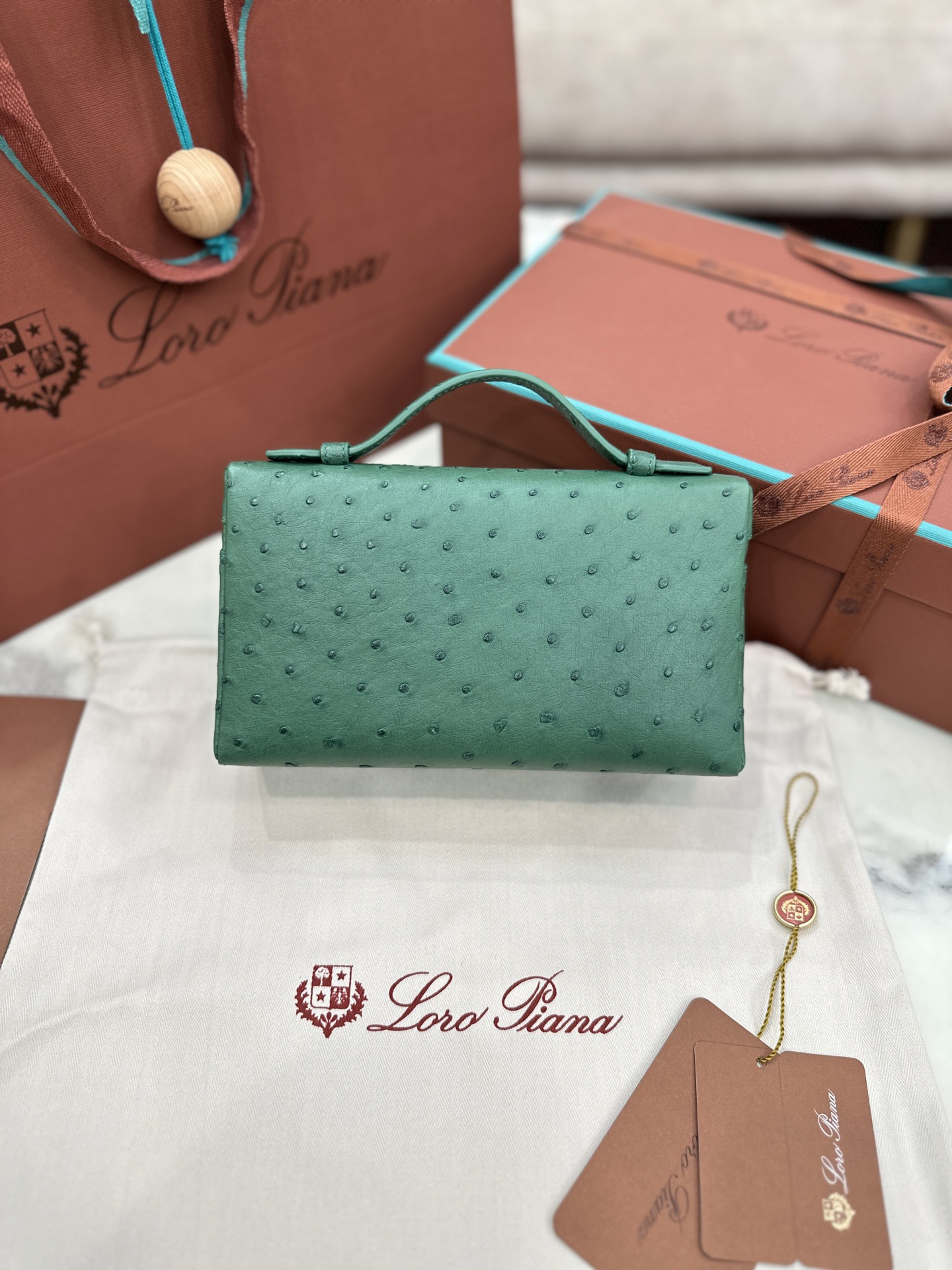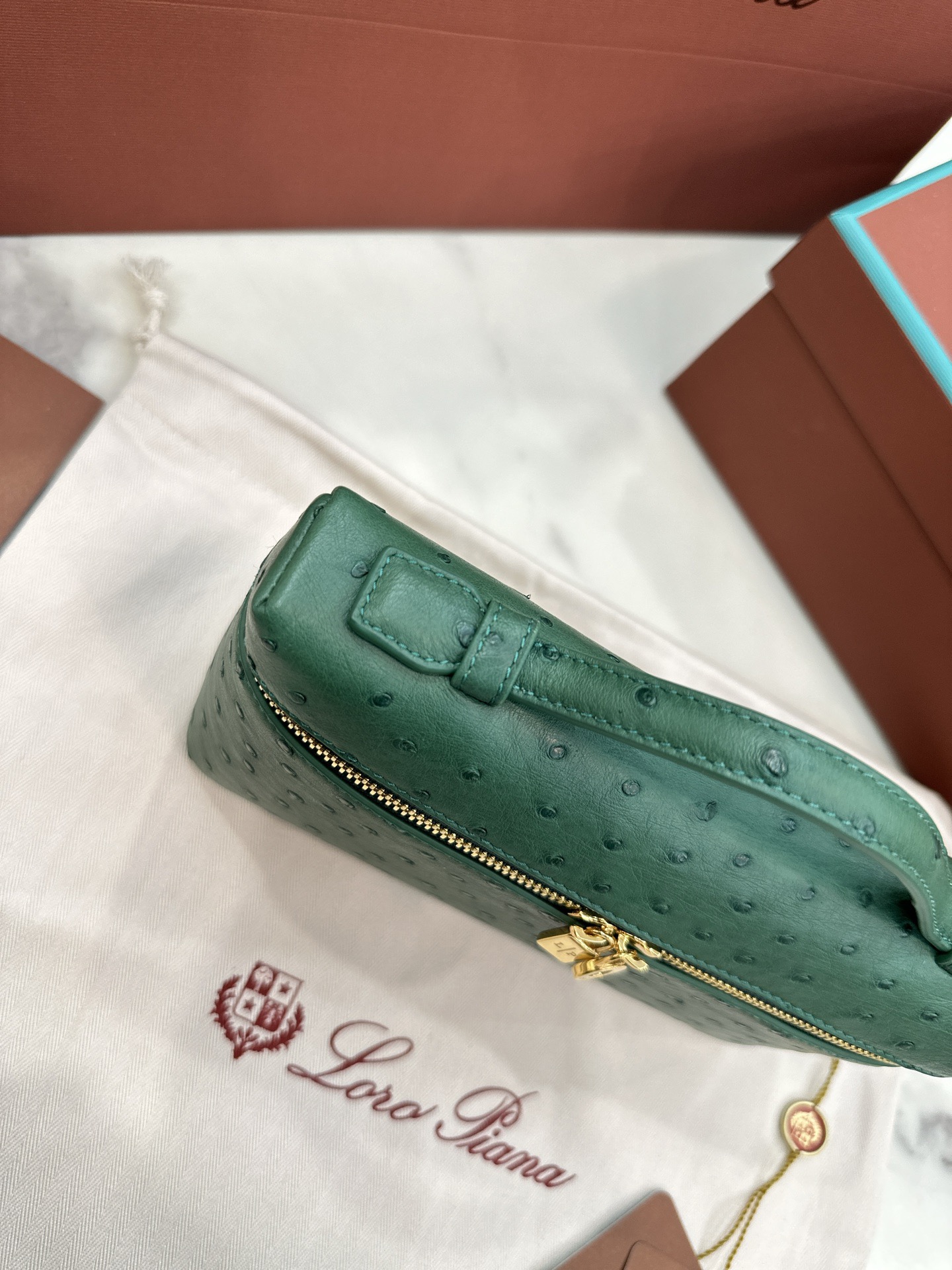 辽宁 loro piana 诺悠翩雅 Extra Poket 19cm 鸵鸟皮 手拿斜挎包 草绿色