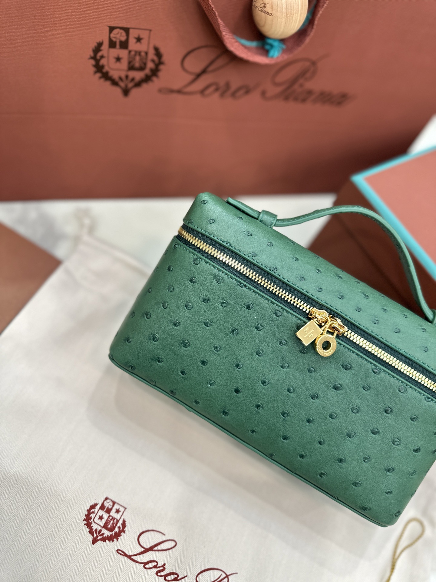 山东 loro piana Extra Poket L19cm 鸵鸟皮 手拿斜挎包 丛林绿金扣