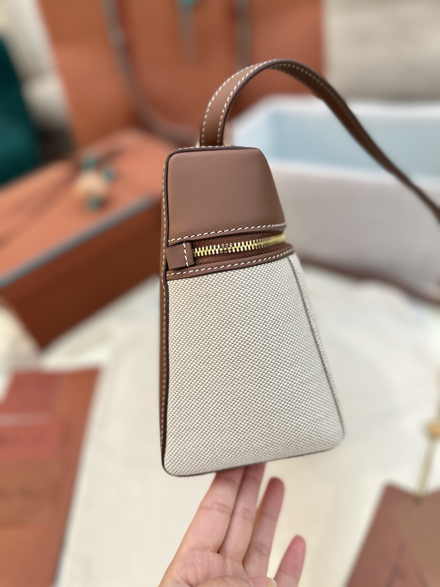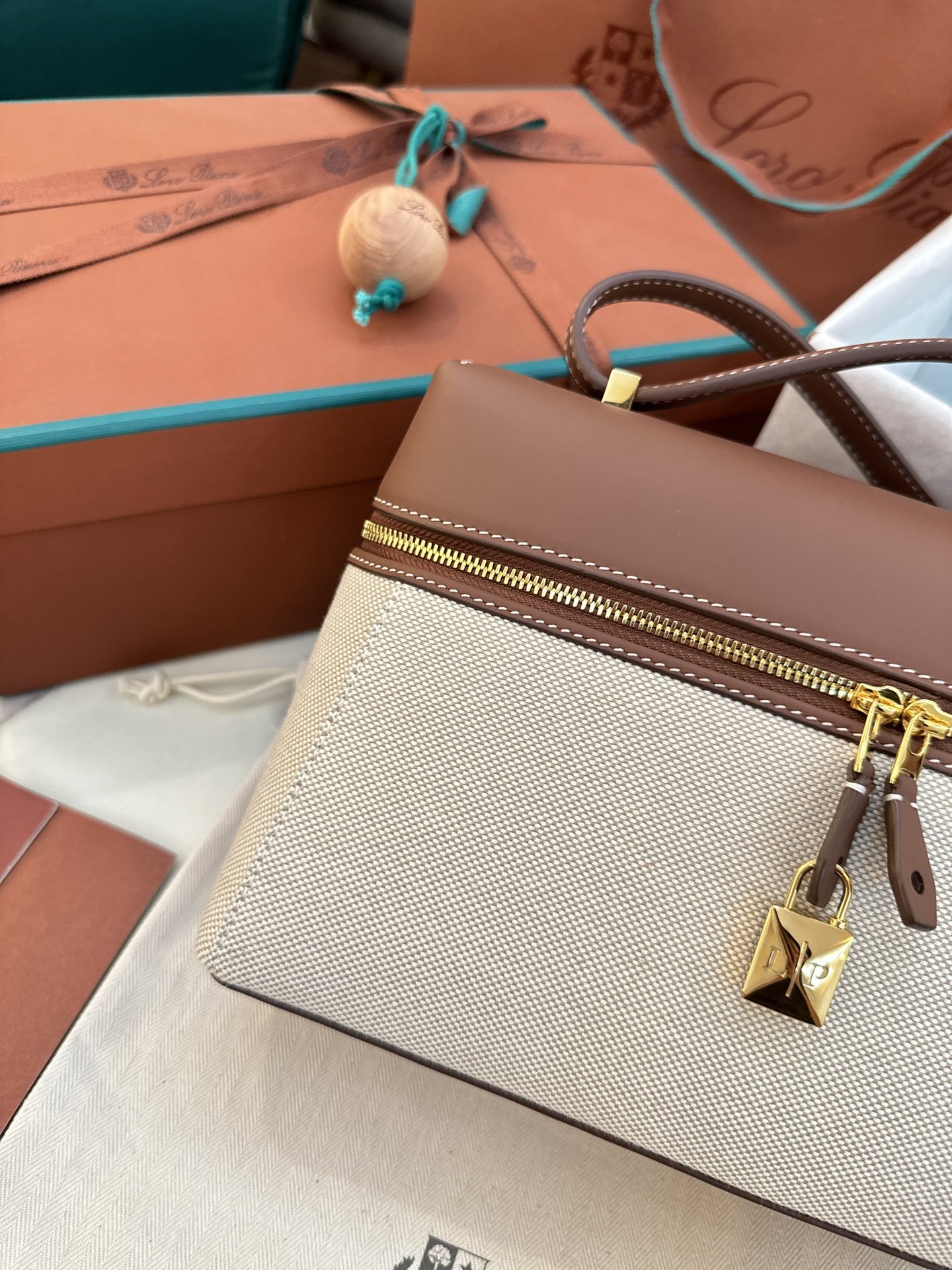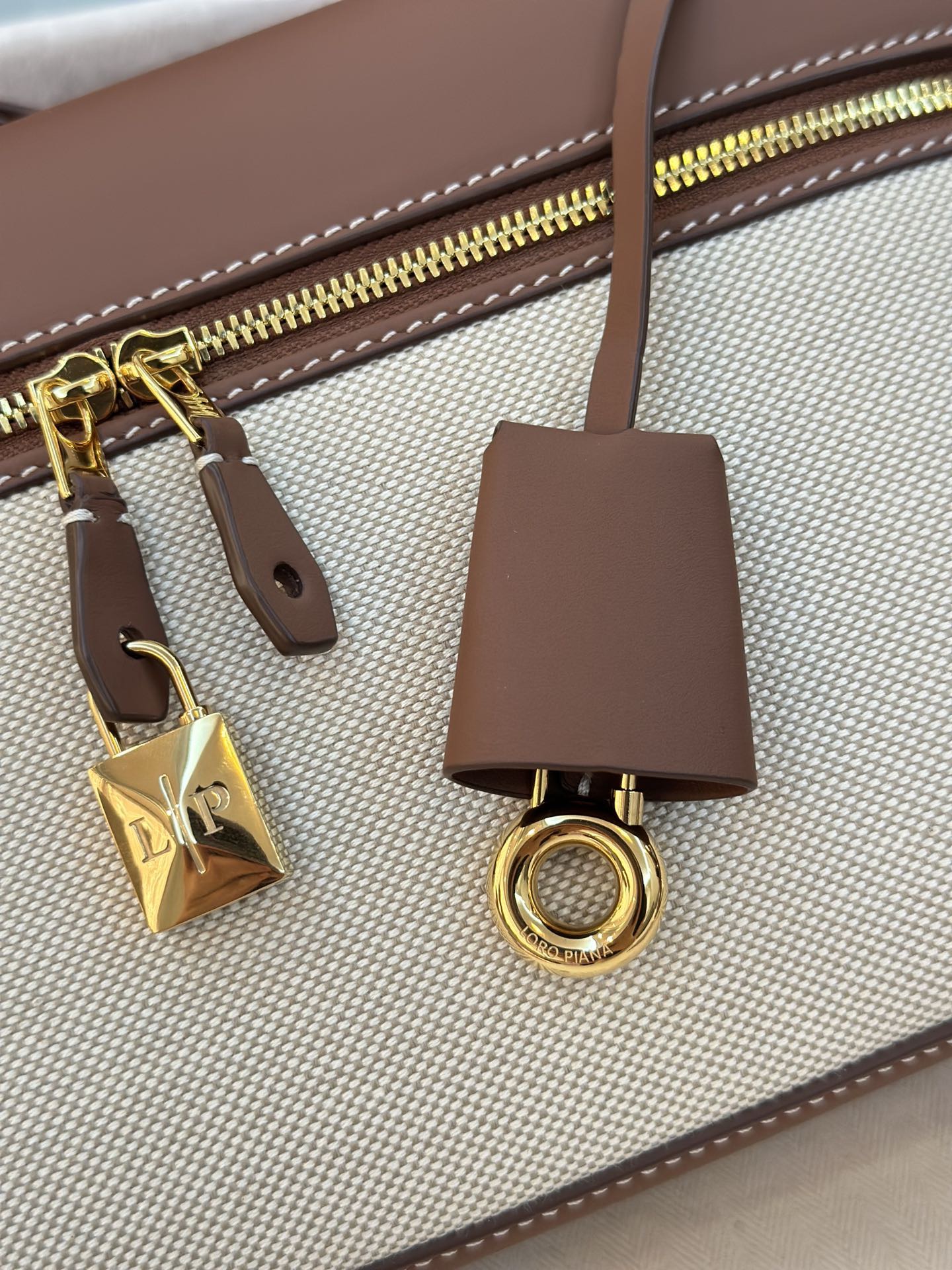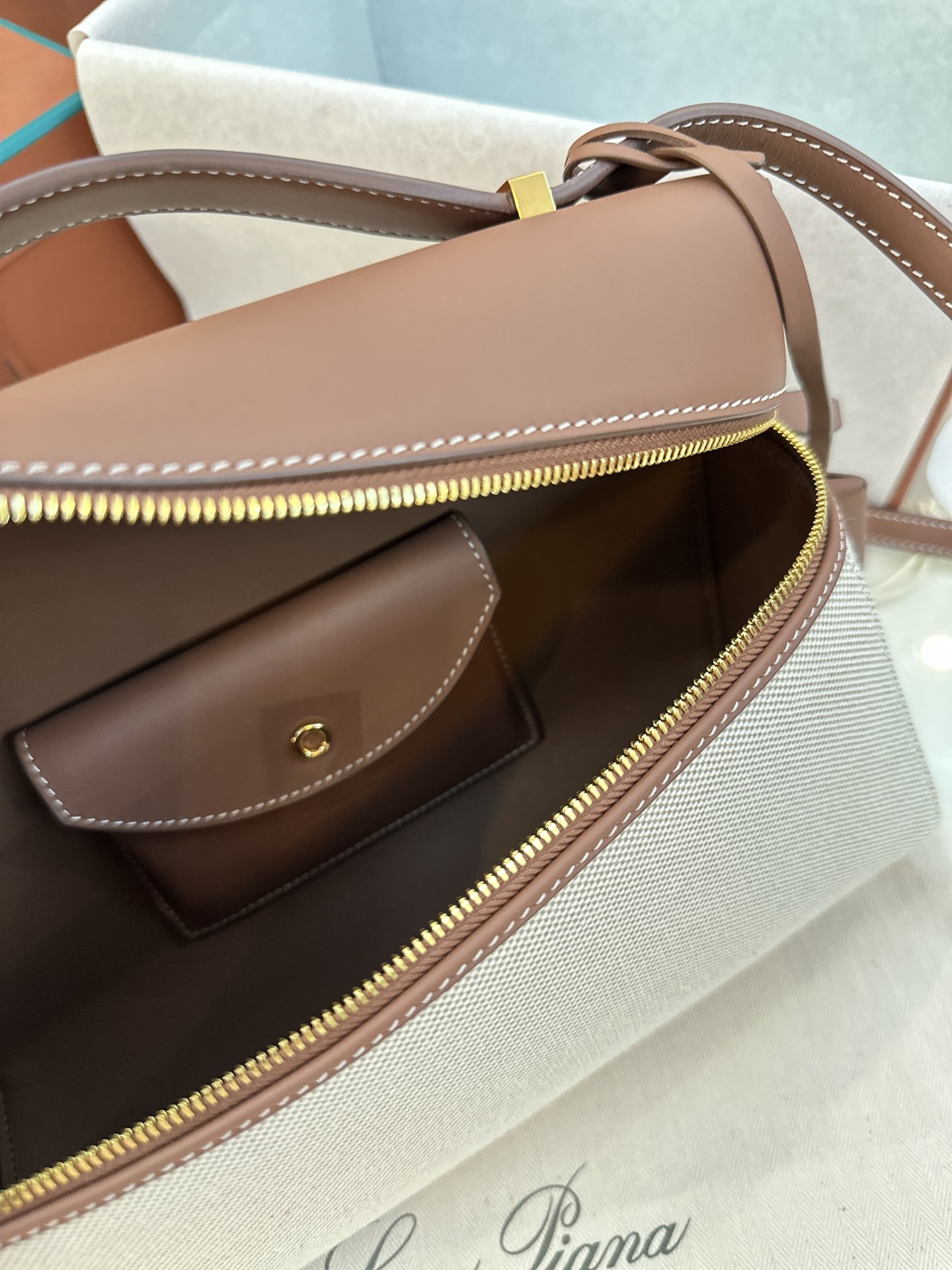 長沙 Loropiana 新款 Extra bag 27 棉亞麻 自然色/焦糖色配色
