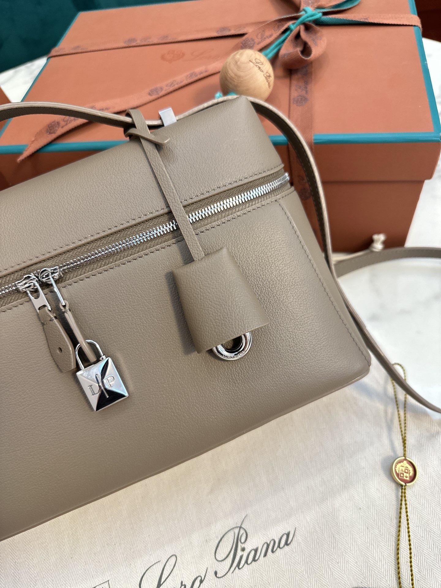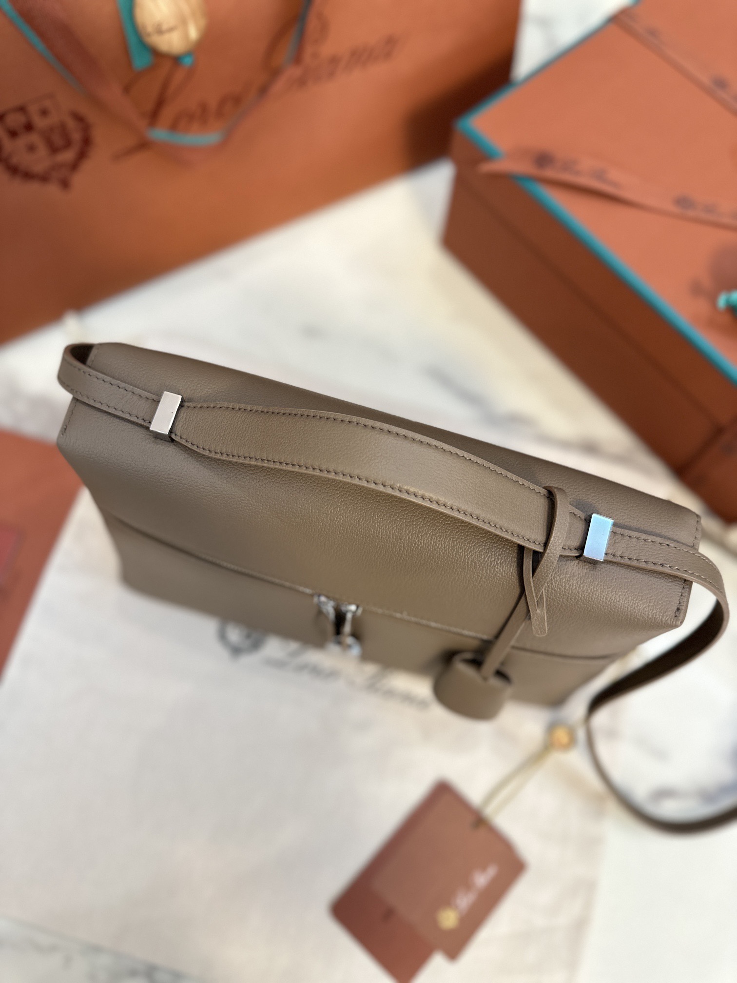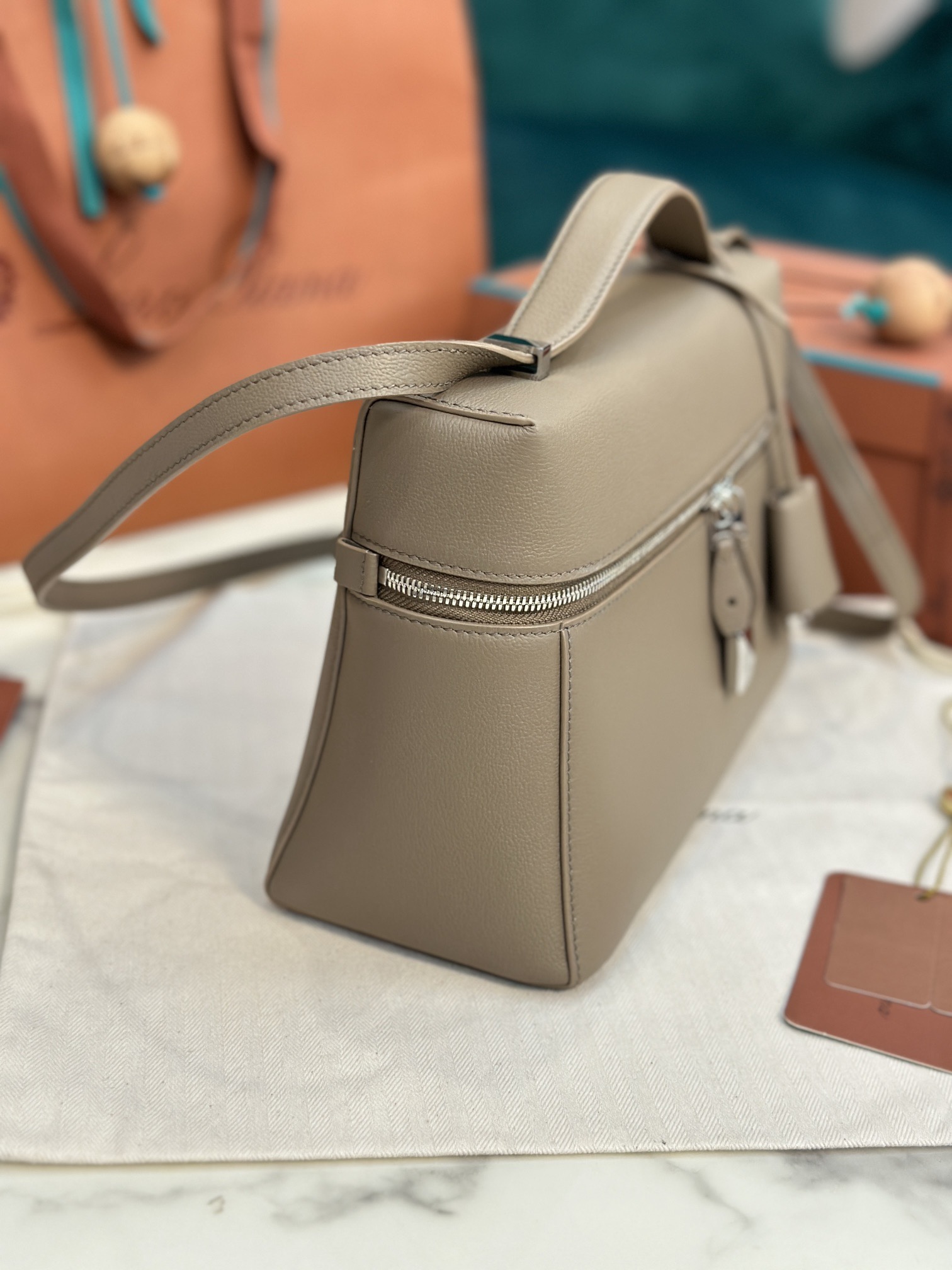 沙特阿拉伯 諾悠翩雅 Loropiana Extra bag 27cm 牛皮 Etoupe大象灰銀扣