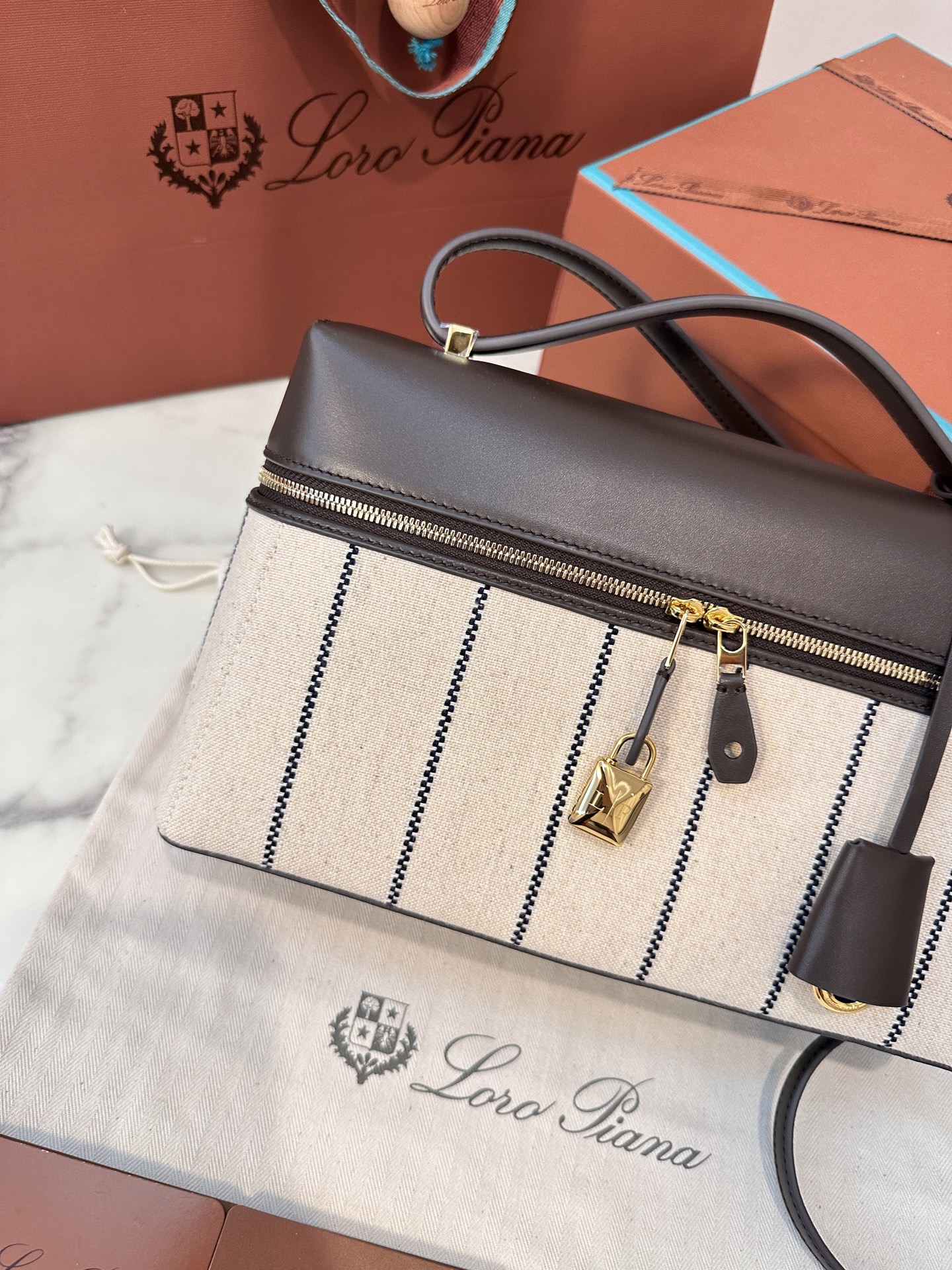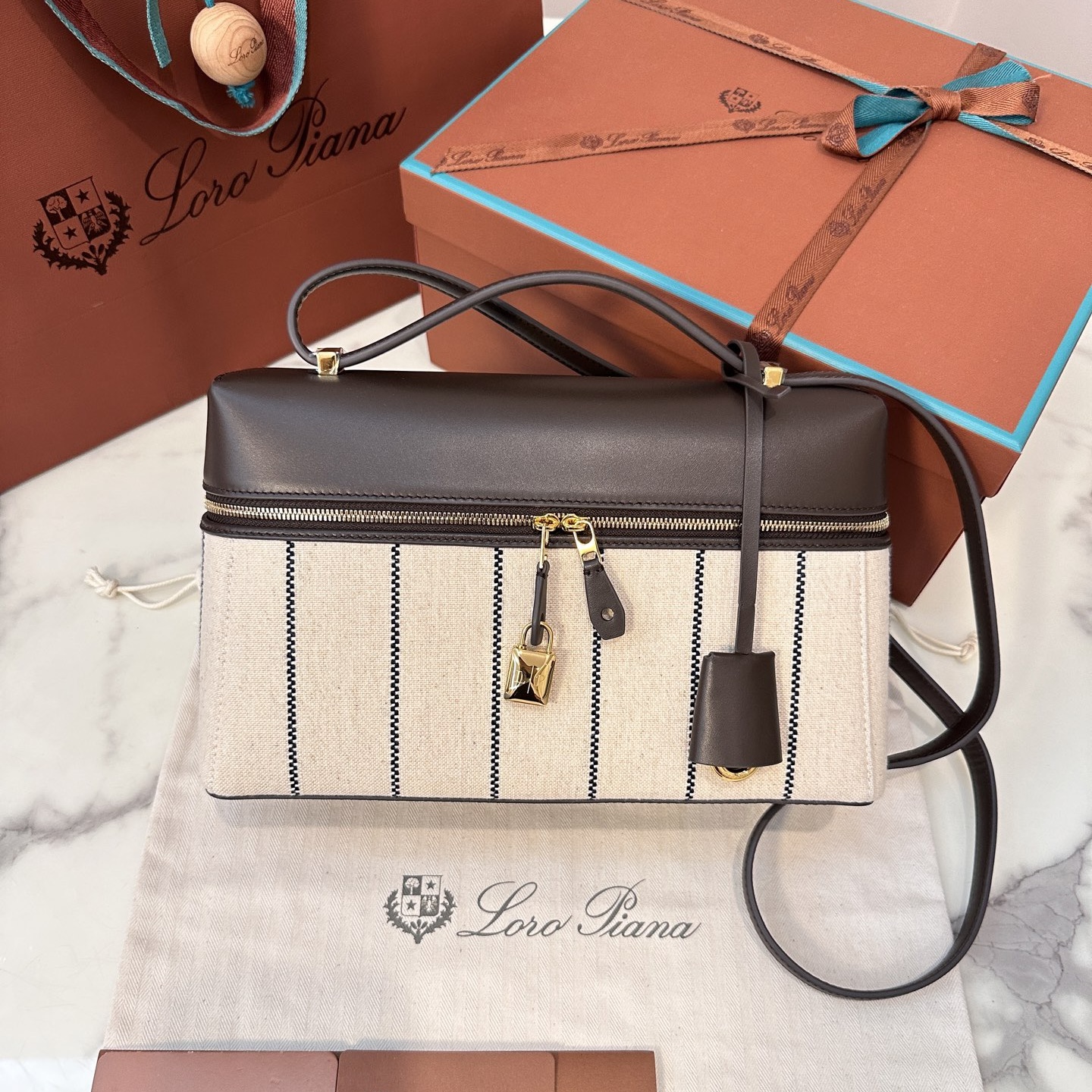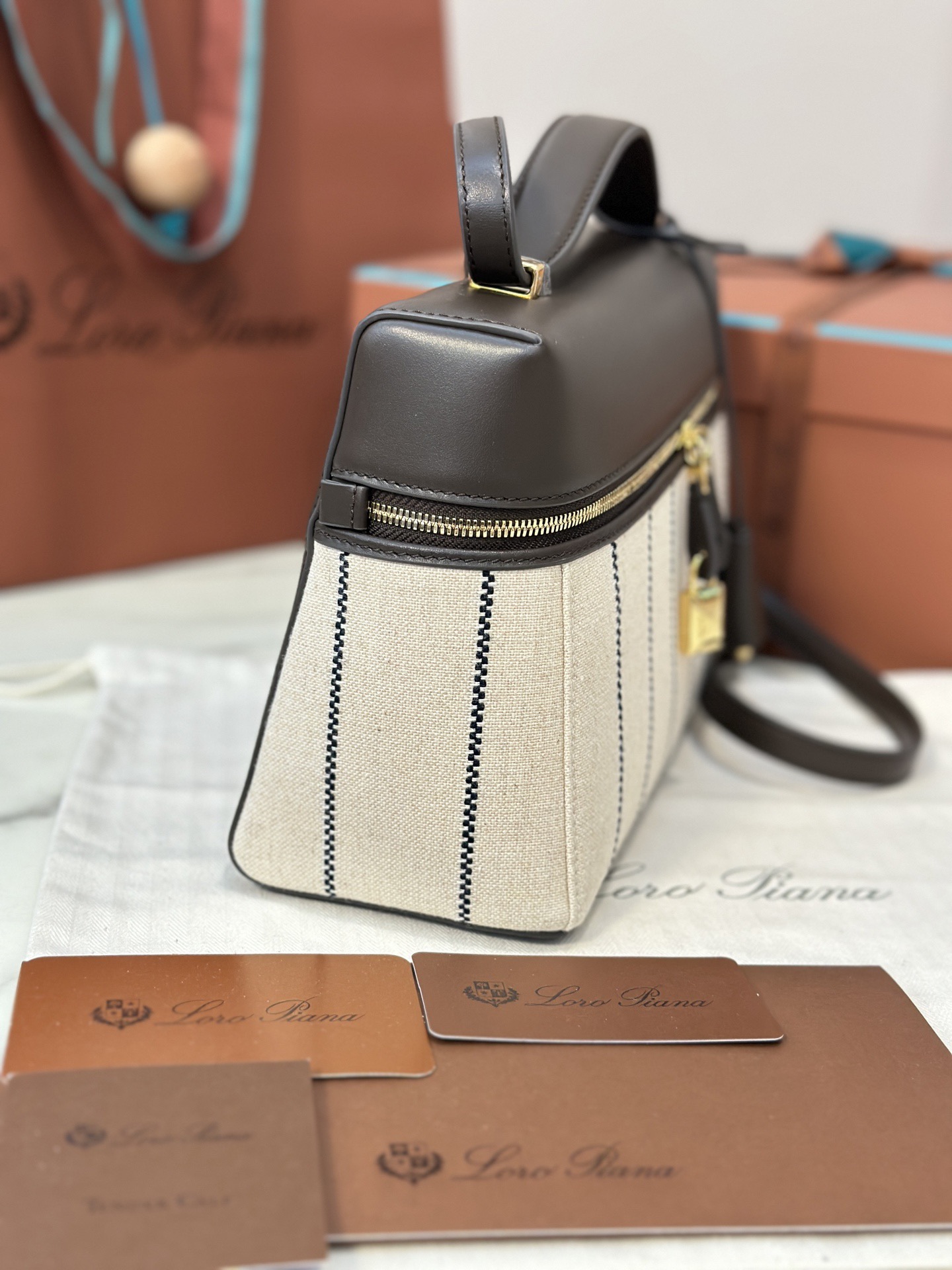 Qatar Doha Loropiana 新款 Extra 相機包 棉亞麻 自然色/焦糖色配色