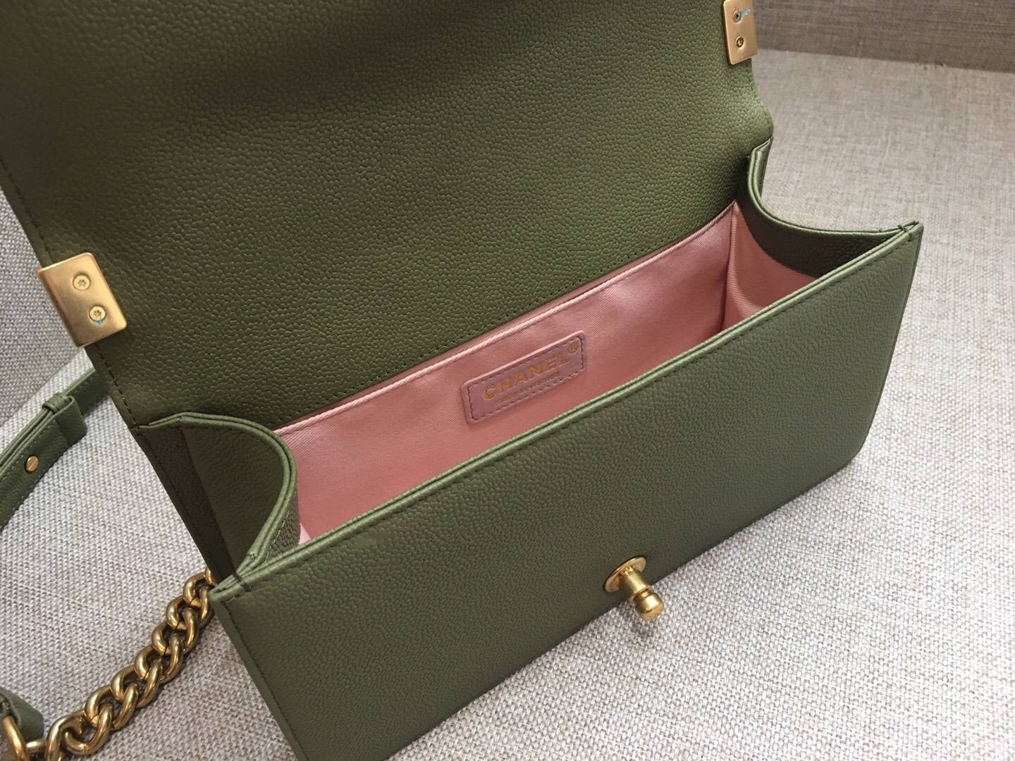 chane..boy handbag metallic grained calfskin ruthenium metal 中號25cm Le boy口蓋包 橄欖綠色魚子醬顆粒壓花小牛皮與金色 復古银色金屬 尺寸:15 x 25 x 8 cm