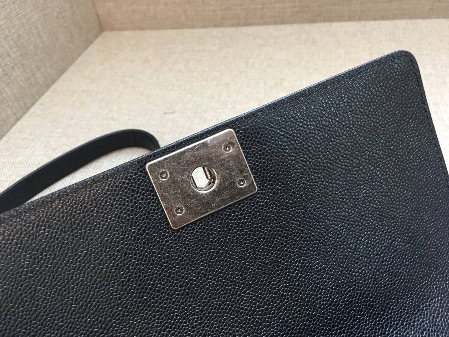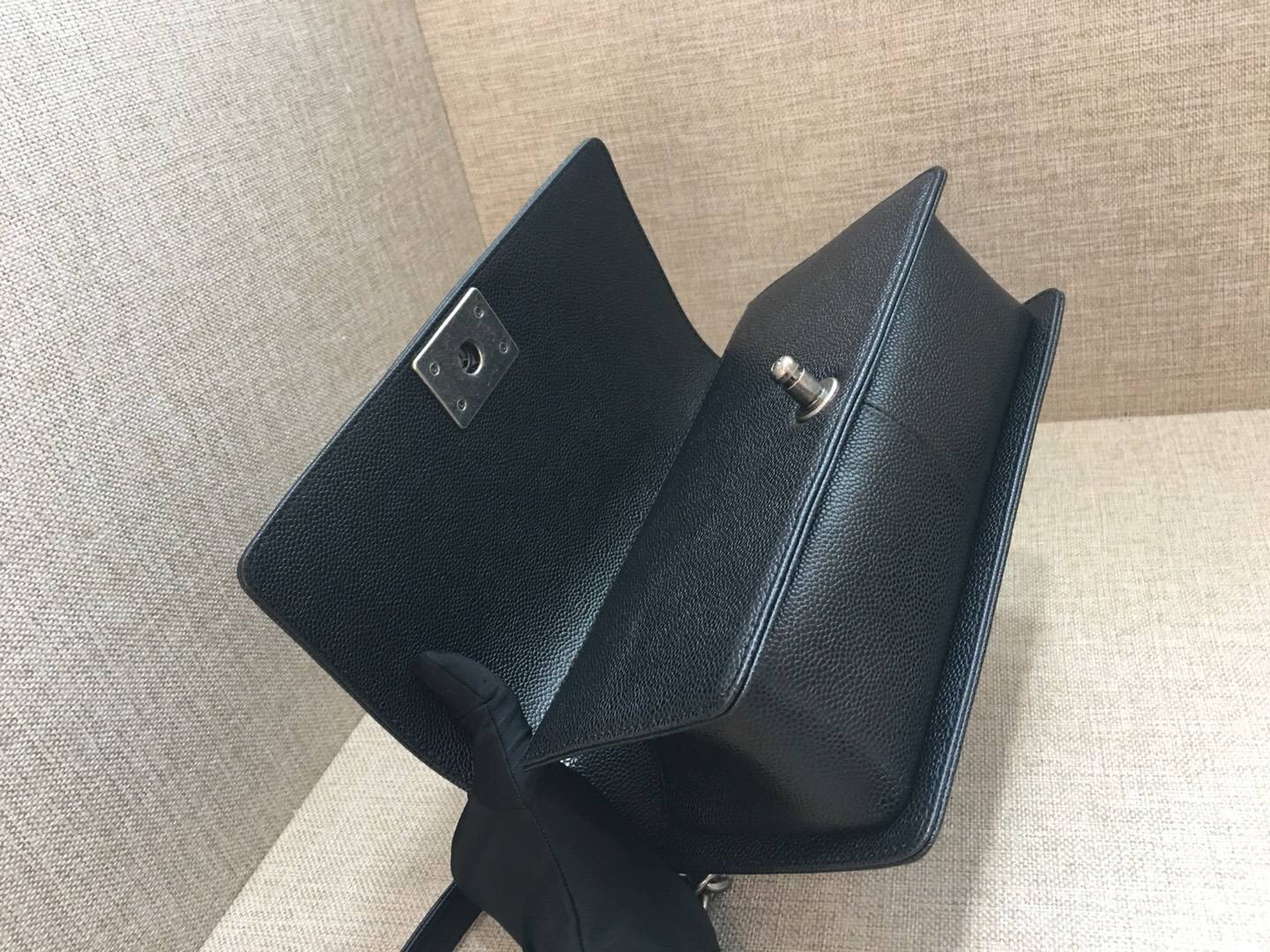 chane..boy handbag metallic grained calfskin ruthenium metal 中號25cm Le boy口蓋包 黑色魚子醬顆粒壓花小牛皮與金色 復古银色金屬 尺寸:15 x 25 x 8 cm