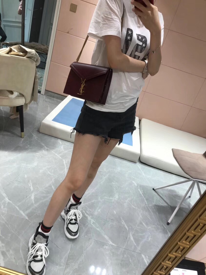 YSL包包官网 SULPICE 中号深红色真皮链条包