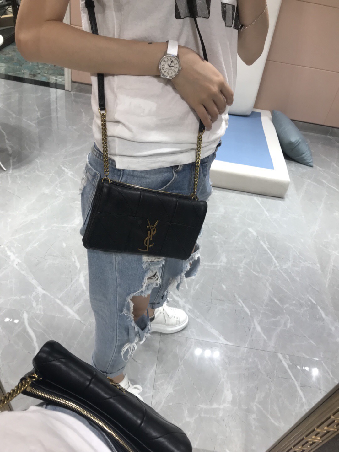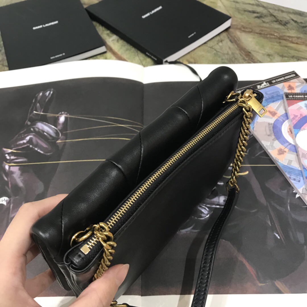 YSL圣罗兰包包官网 JAMIE CHAIN WALLET 黑色拼接真皮链条手抓包