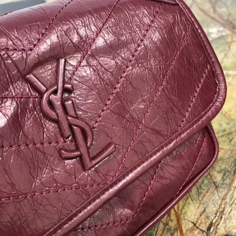 圣罗兰包包YSL NIKI 迷你酒红色褶皱绗缝真皮链条包