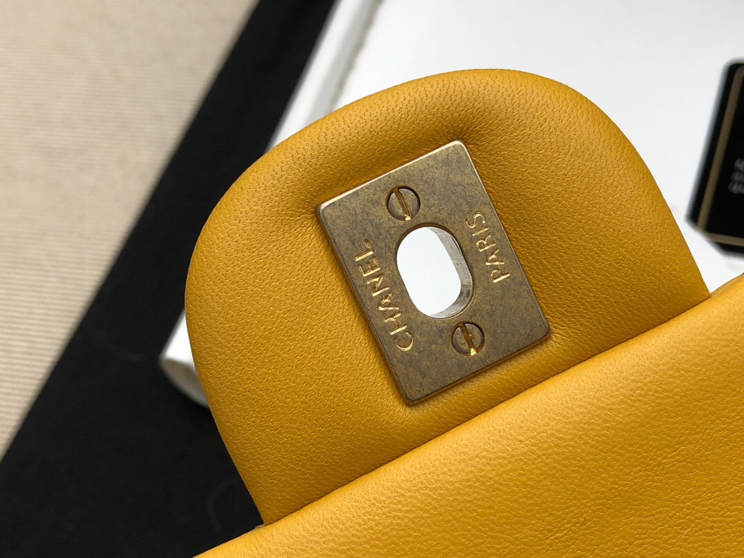 香奈儿包价格 Classic Flap Bag 芒果黄色羊皮菱格链条经典口盖包 浅金色金属