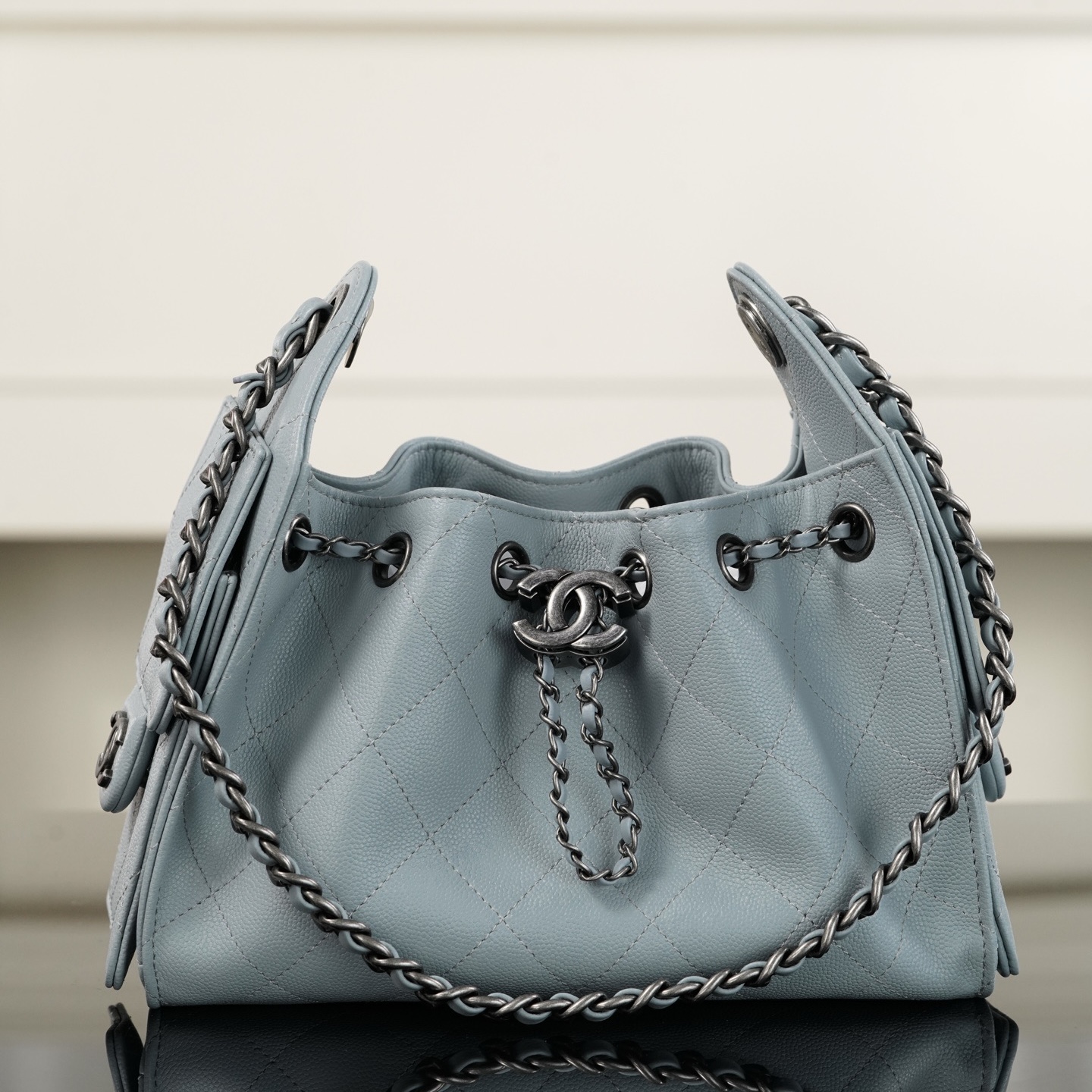 香奈兒25bag官方價格 美國洛杉磯 香奈兒 26c系列 25bag Mini魚子醬 天藍古銀