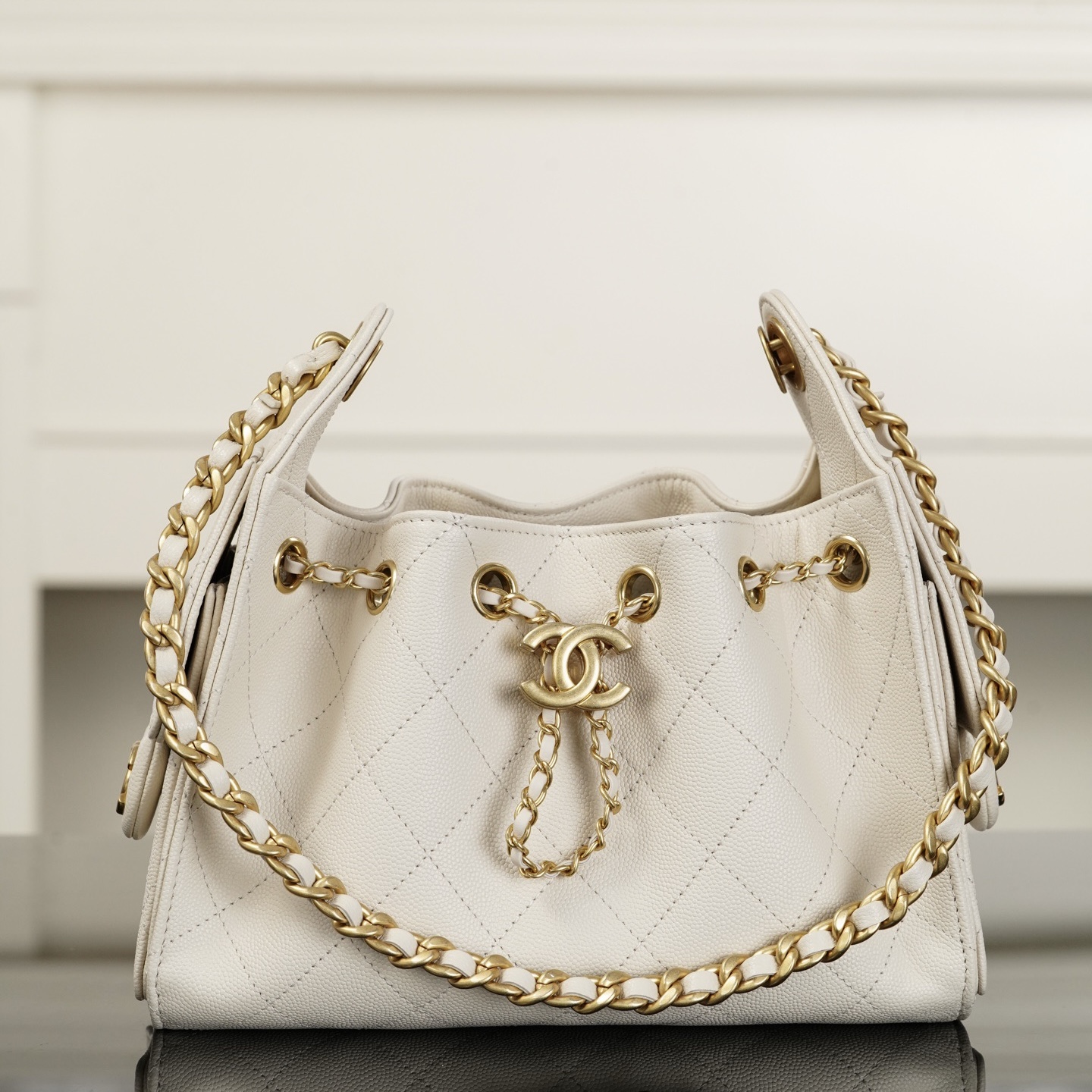 香奈儿官网 2019春夏新款 羊皮颗粒压花小牛皮围链口盖包