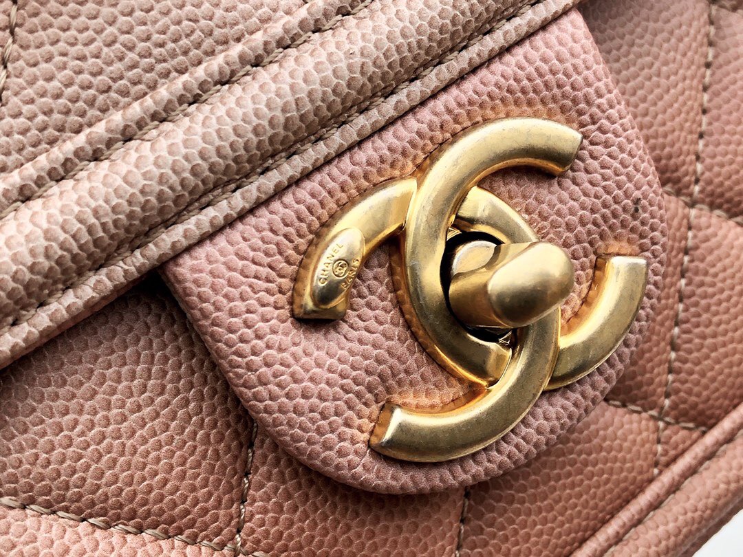 香奈儿官网 2019新款渐变色 颗粒压花小牛皮 渐变奶茶色口盖包